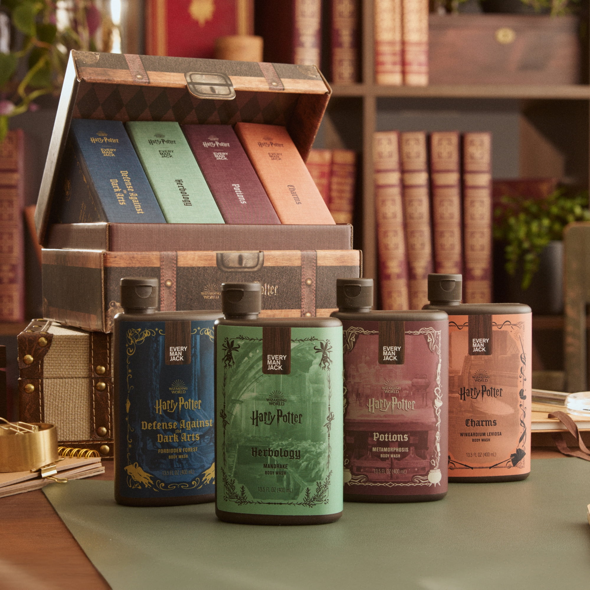 Turn your shower into an enchanting world of bubbling potions, magical scents, and powerful ingredients derived from nature with a limited edition set of body washes inspired by classes at Hogwarts™. No wands needed. Just pour into your favorite loofah, wash cloth, or straight on your skin, then lather up for a spellbinding clean. for all ages.