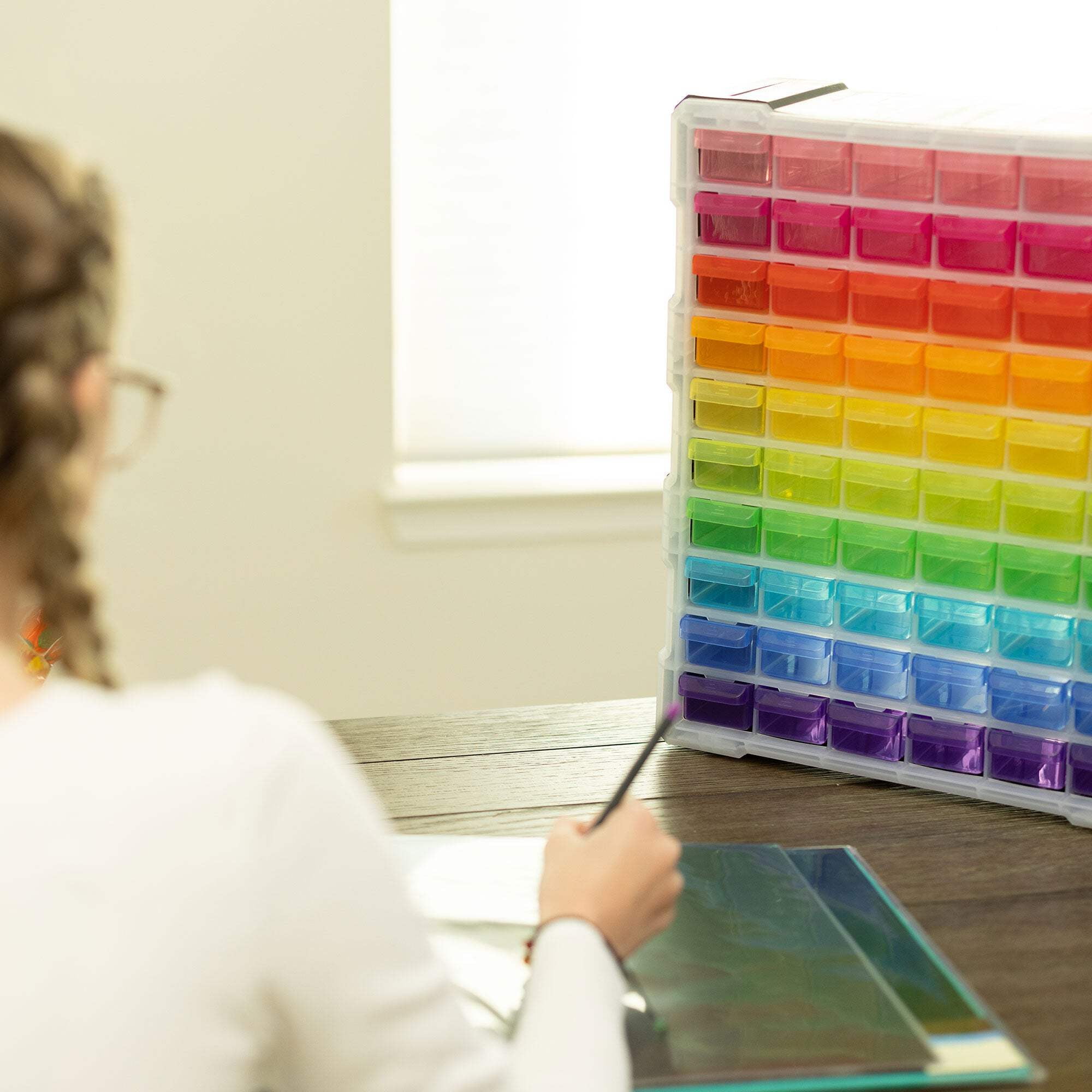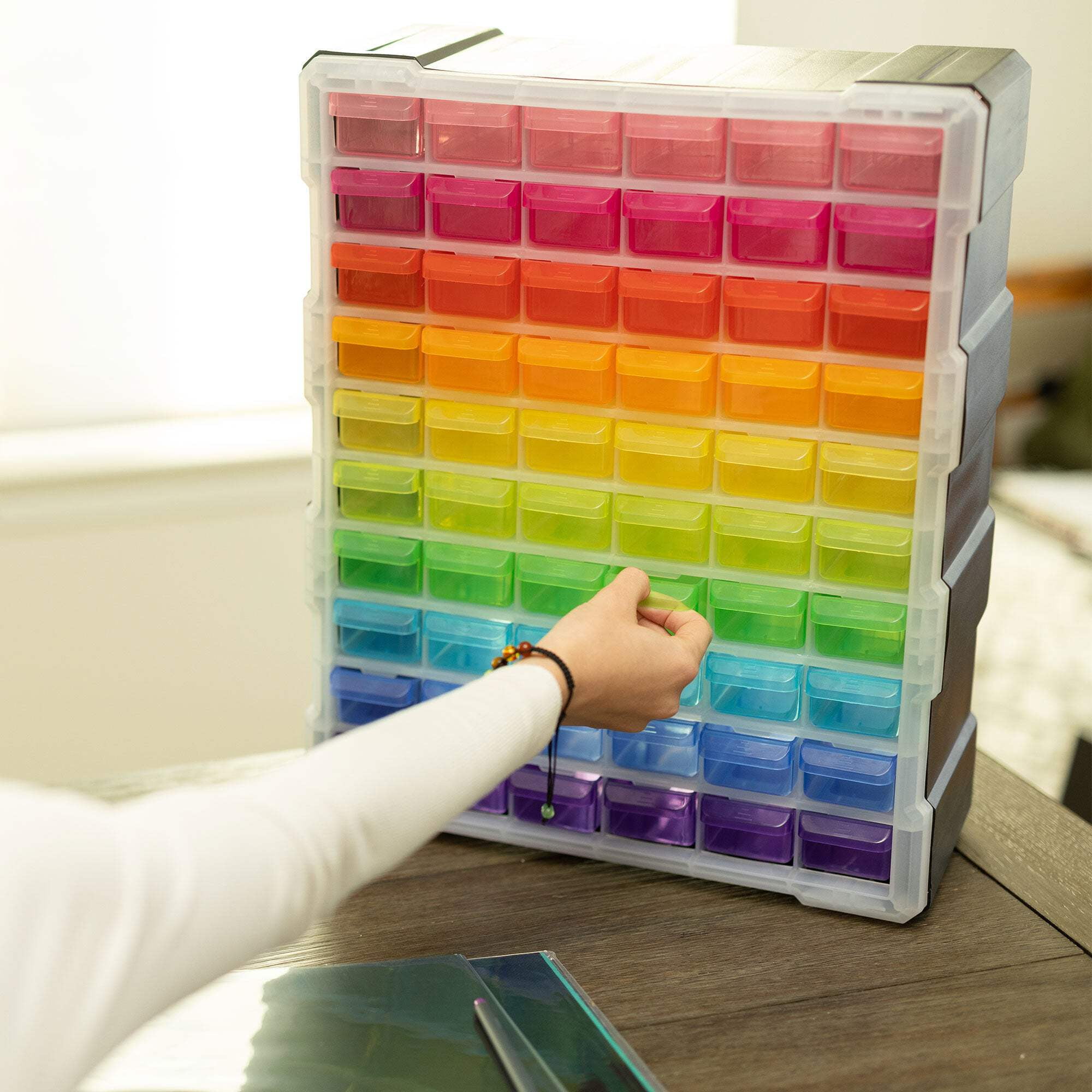 The Everything Mary 60 Drawer Organizer is an excellent storage option for crafts and other items. It’s made of high-quality, durable plastic, ensuring safety for your belongings. With 60 bins, it’s perfect for sorting various items like beads, sewing materials, office supplies, screws, legos, and tools. The easy-open design allows for effortless access to your items.