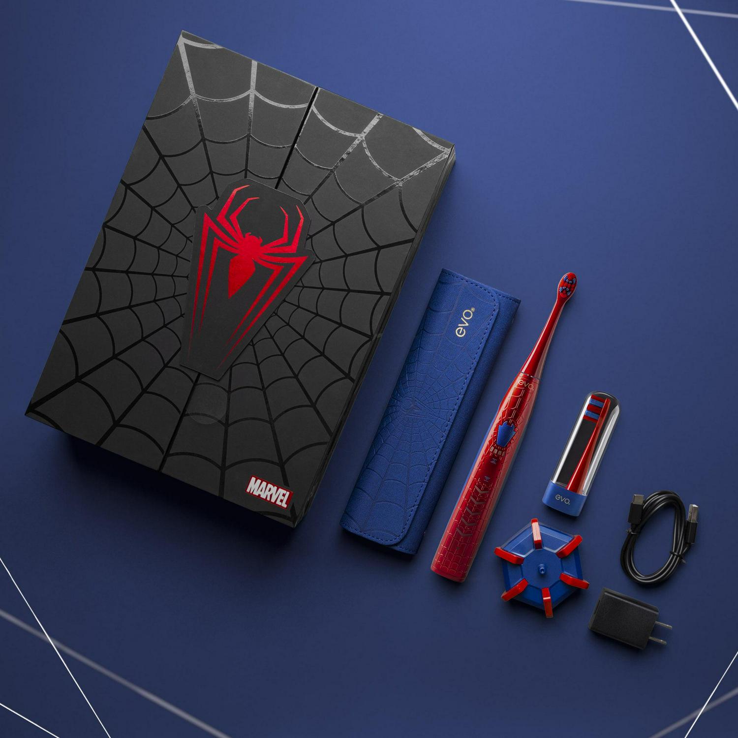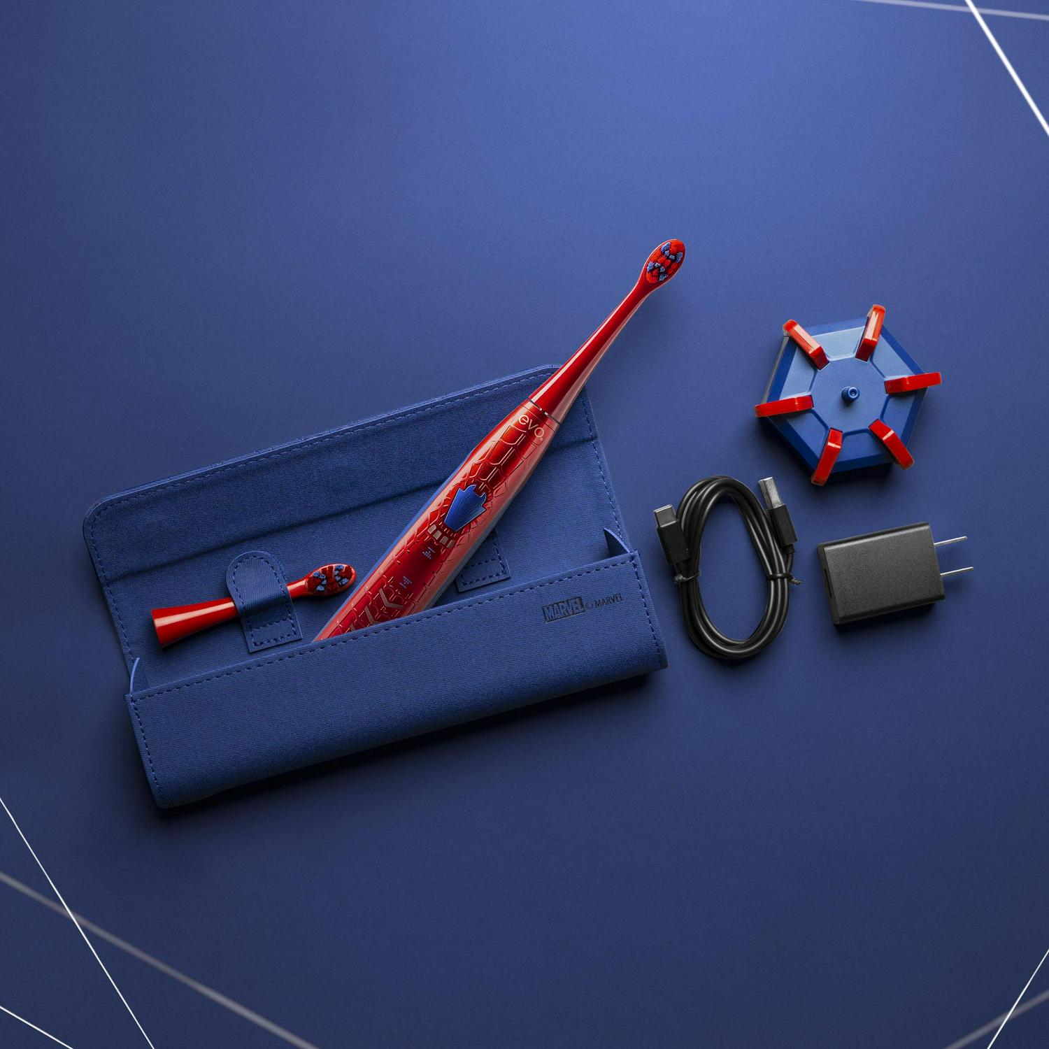 EVO SPM-1 Rechargeable Sonic Toothbrush, Spider-Man Toothbrush, Marvel Avengers Gifts, Spiderman Men’s Toothbrush, Electric Toothbrush with Travel Case, Collector’s Edition