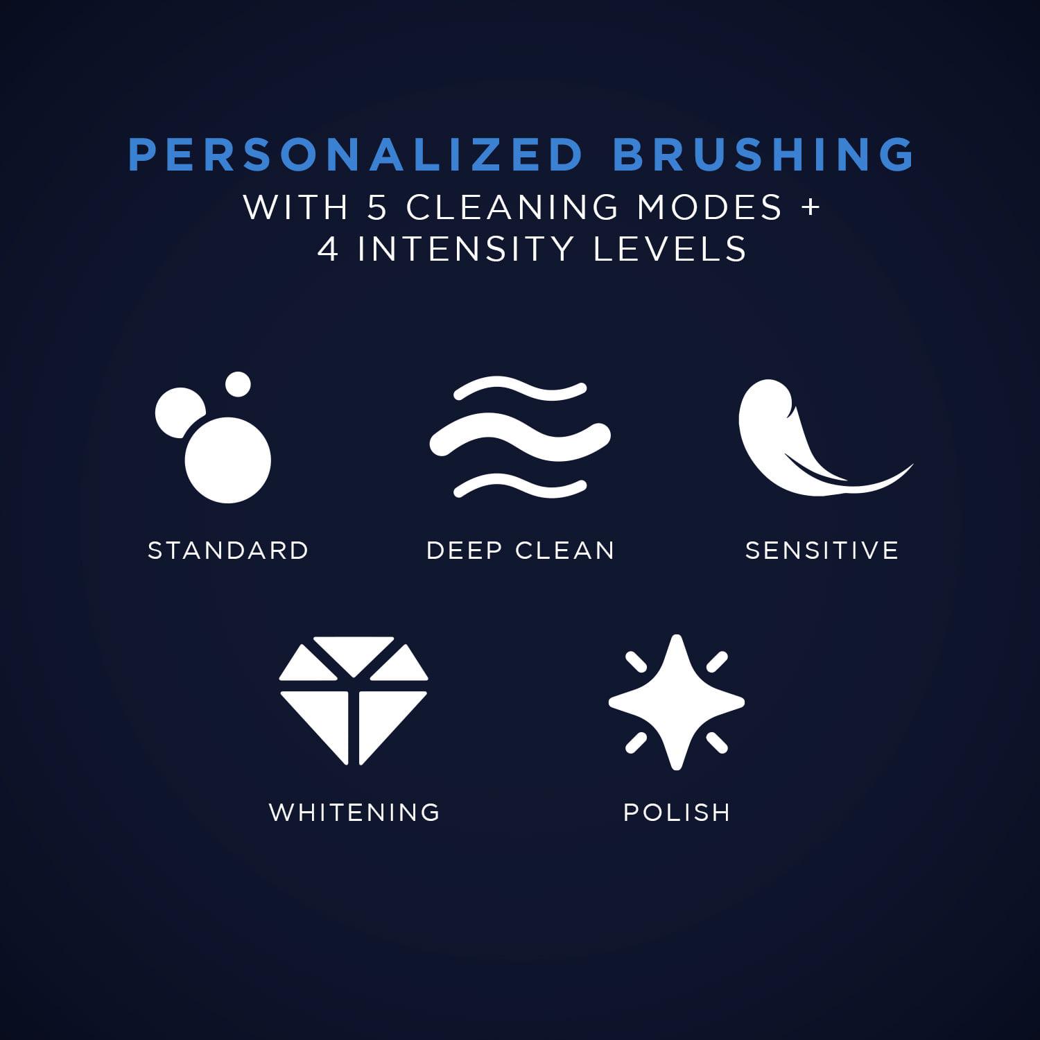 – The SPM-1 tooth brush features 4 intensity levels and 5 cleaning modes that combine to create 20 different settings; easily change your preferences with the swipe of a finger using a touch sensor