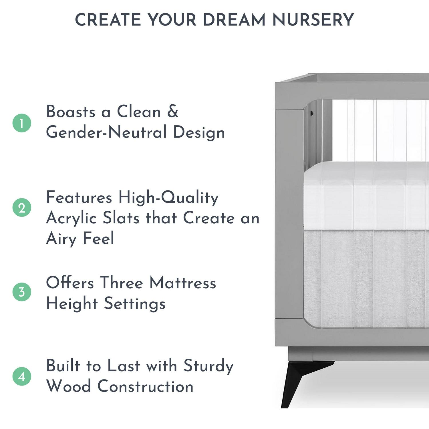 Evolur Acrylic Millennium 4-in-1 Convertible Crib in Pebble Grey