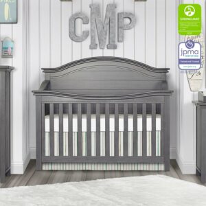 – Evolur Belmar Curve 5-in-1 Convertible Crib in Rustic Grey, Greenguard Gold Certified