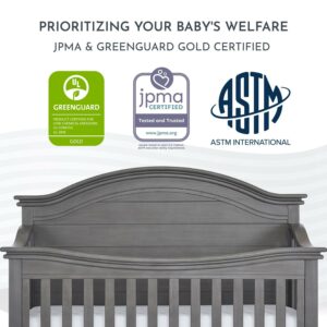 - Evolur Belmar Curve 5-in-1 Convertible Crib in Rustic Grey, Greenguard Gold Certified