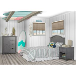 A tale of bonfires and sandcastles, beaches and seashells, the Evolur Belmar 5-in-1 Convertible Crib is inspired by coastal design Taking inspiration from the iconic Adirondack chairs that are found on the golden sands of our coasts, the Belmar 5-in-1 Convertible Crib features clean, simple lines, shiplap details, and routing lines Its gender-neutral and timeless styling makes it an excellent fit for a variety of decor themes Constructed out of kiln-dried hardwood with hardwood veneers, the Belmar is built to last and is truly a lifetime investment. We believe in creating furniture that evolves with your growing child The Belmar 5-in-1 Convertible Crib does exactly that The Belmar features 3 mattress height settings that can be adjusted depending on your child Set it at its highest setting during the newborn months and lower it as your child starts to pull up and stand It converts to a toddler bed with our conversion kit (sold separately) and daybed Add our wooden bed frame (sold separately) to convert it into a full-size bed . The Belmar is available in two sophisticated finishes – Rustic Grey and Weathered White, and in two designs – Flat Top and Curved Top At Evolur, safety is always our No 1 priority – This crib is Greenguard Gold certified which means that it has been tested for thousands of chemicals and VOCs and helps in providing a safe and healthy environment for your baby and family Our cribs are built to the highest safety standards that meet/exceed those set by the CPSC, JPMA, and ASTM . Each of our cribs undergoes rigorous testing by independent laboratories for compliance with all US and Canadian crib regulations Pick coordinating pieces from our Evolur Belmar Collection like the Double Dresser, Tall Chest, Hutch, and Nightstand to create a timeless nursery . For the best mattress fit, we recommend any Dream on Me or Evolur standard, full-size, non-toxic, Greenguard certified crib mattress (sold separately)
