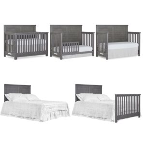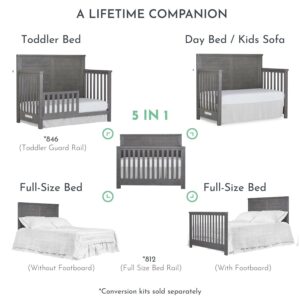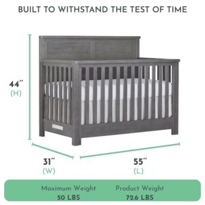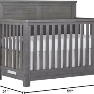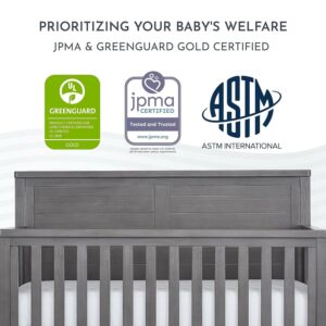 Evolur Belmar Flat 5-in-1 Convertible Crib in Rustic Grey, Features 3 Mattress Height Settings, Greenguard Gold Certified, Made of Kiln-Dried Hardwood