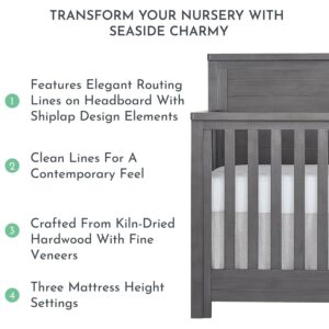 INSPIRED BY THE OCEAN – Featuring a traditional wooden sailboat-inspired design, the Belmar 5-in-1 Convertible Crib brings a bit of the sea into your home Available in a Flat & Curved Top design and crafted out of kiln-dried hardwood with fine veneers,5-in-1 CONVERTIBILITY – The Belmar converts to a toddler bed with our conversion kit (sold separately) and daybed Add our wooden bed frame (sold separately) to convert it into a full-size bed It also features 3 mattress height settings,TIMELESS FINISHES – The Belmar is available in two contemporary finishes – Rustic Grey and Weathered White With a gender-neutral form, the Belmar is perfect for a boy or girl nursery,SAFETY FIRST – This crib is Greenguard Gold certified All of our cribs meet/exceed the safety standards set by the CPSC, JPMA, and ASTM and undergo rigorous testing by independent laboratories for compliance with all US and Canadian crib regulations,A LIFETIME INVESTMENT – Pick coordinating pieces from our Evolur Belmar Collection like the Double Dresser, Tall Chest, Nightstand, and Hutch to create a timeless nursery.
