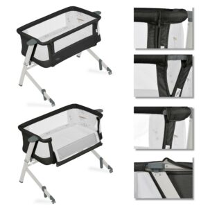 Evolur Stellar Bassinet and Bedside Sleeper in Black, Easy to Fold, Lightweight and Portable