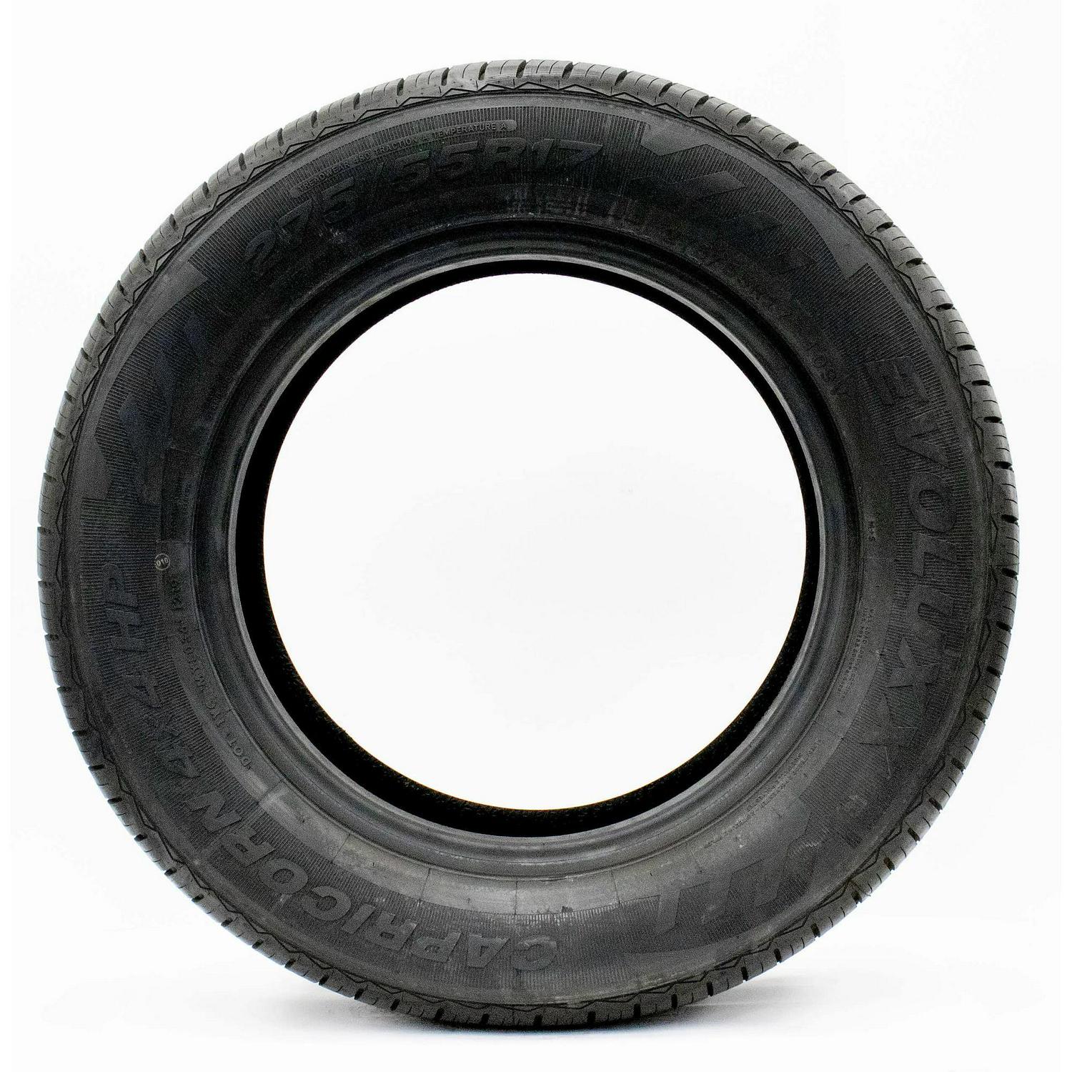 The Evoluxx Capricorn 4X4 HP is a performance-oriented, all-season tire that’s made for passenger vehicles and SUVs and features a 55,000 mile limited manufacturer tread life. The symmetric tread design and durable structure work together to improve high-speed controllability, and the shoulder block placement and siping placement of Capricorn 4X4 UHP boosts grip on the road. An all-season tread pattern boosts the tire’s dry, wet, and light winter weather grip also, and the rubber compound of the Capricorn 4X4 HP maintains the ideal rubber flexibility in various conditions, increasing the traction and allowing for year-round use.