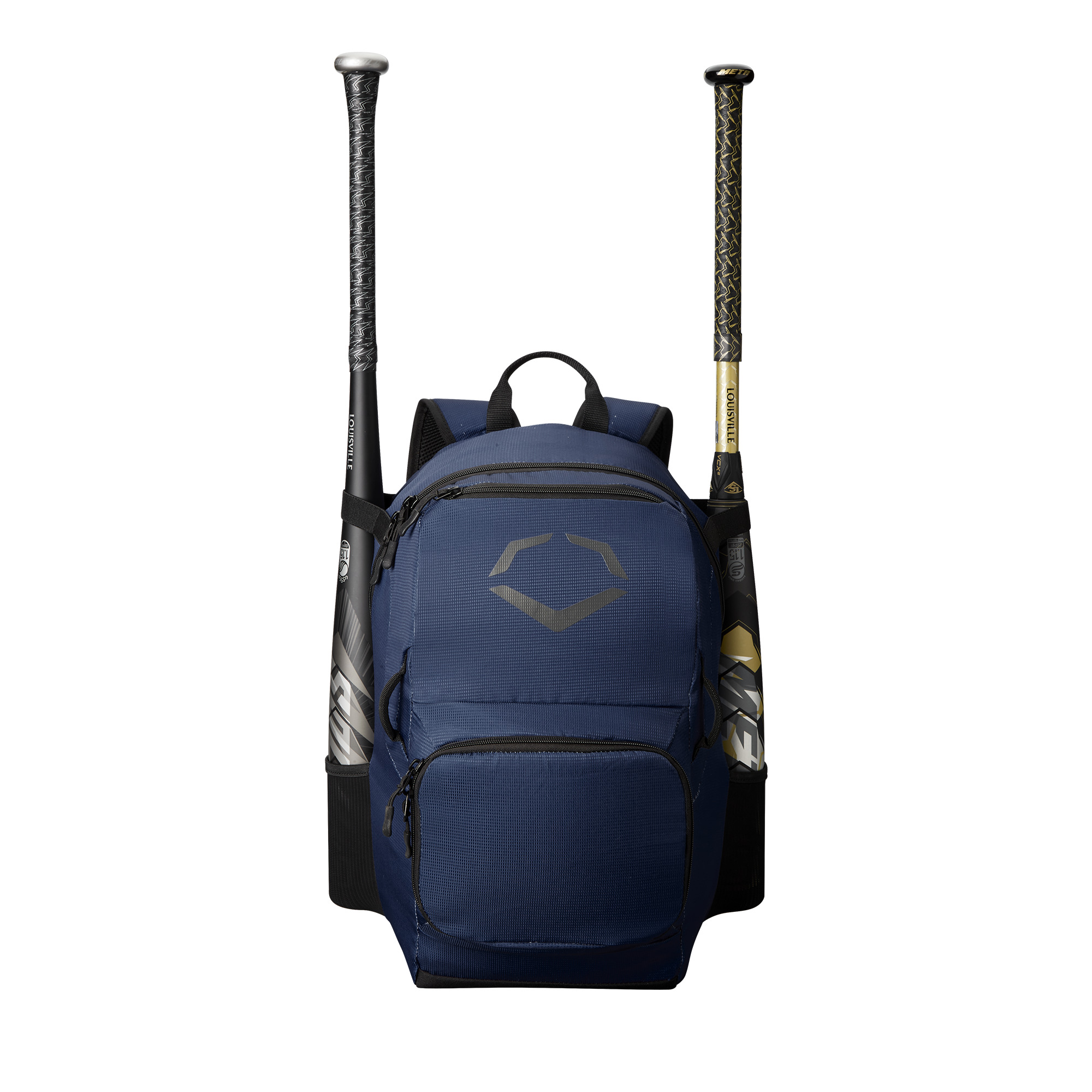 With a sizable main compartment and two mesh bat sleeves, the EvoShield SRZ-1 backpack is built for young players to stash all their gear on the go. Fit a youth glove, batting helmet, and additional gear in the main compartment, store your bat in one side pocket and your water bottle in the other, then meet your teammates at the field on game day. Strap your batter’s protective gear or batting gloves to the external webbing loops and keep your gear close with the EvoShield SRZ-1 backpack.