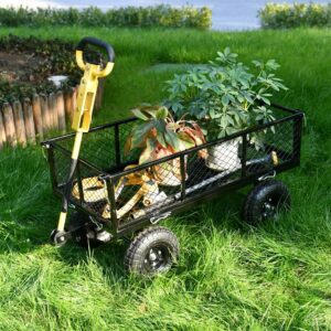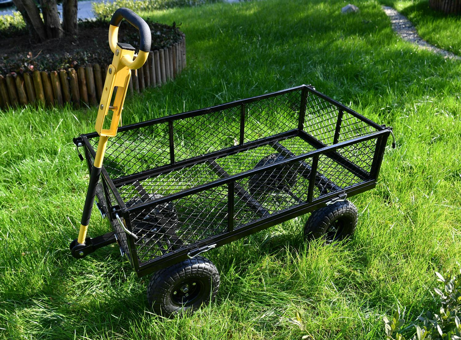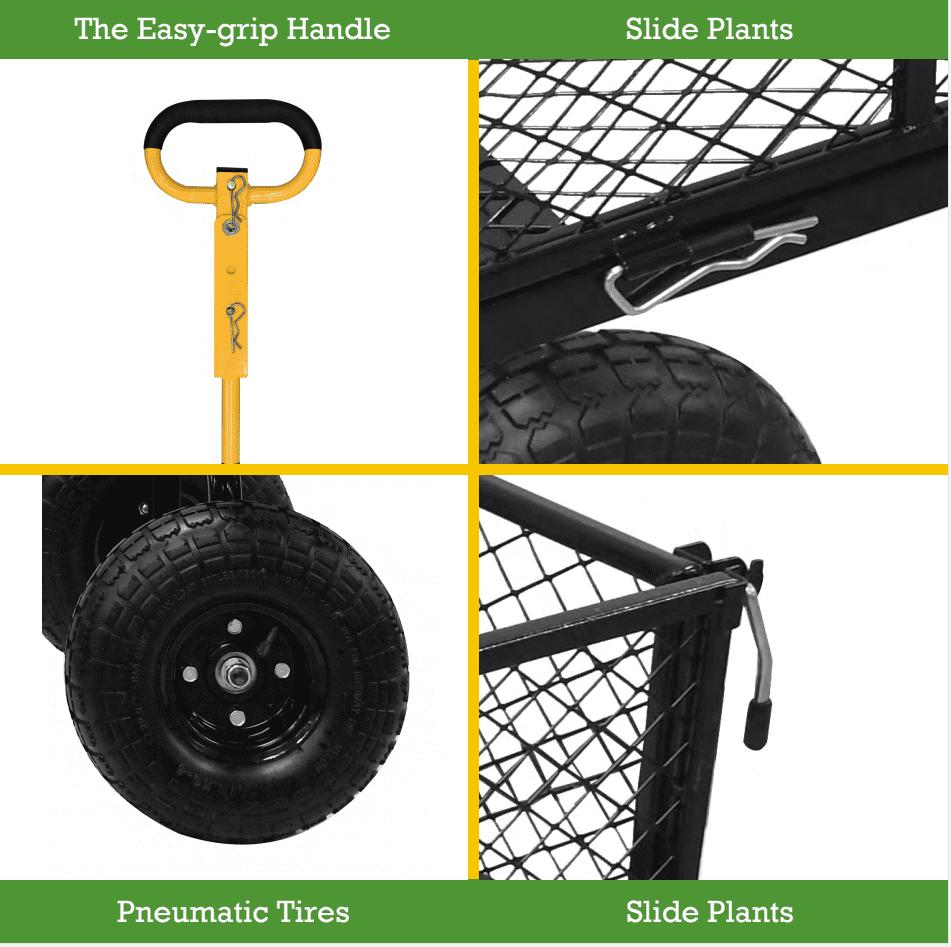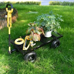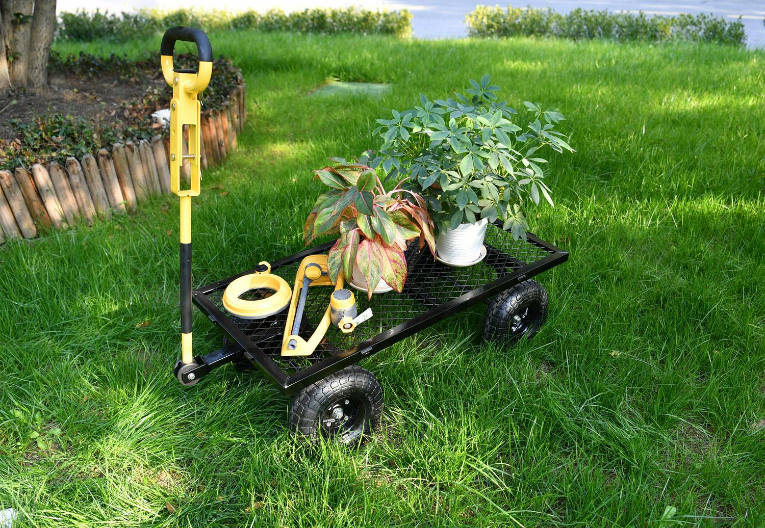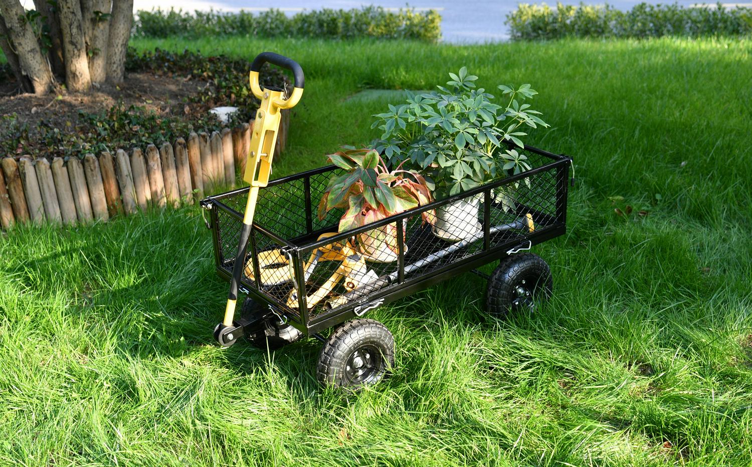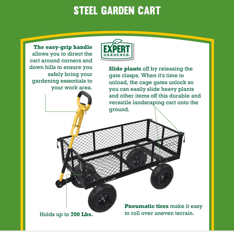The Expert Gardener Landscaping Plant and Tool Cart makes it easy to transport tools, plants and more with a sturdy metal cage and heavy-duty tires. This cart can hold up to 700 pounds. The easy-grip handle allows you to direct the cart around corners and down hills to ensure you safely bring your gardening essentials to your work area. When it’s time to unload, the cage gates unlock. You can easily slide heavy plants and other items off this durable and versatile landscaping cart onto the ground. This cart’s size is 43.9in. x 19.5in. x 39in and weighs 42in. Start creating your dream garden today.