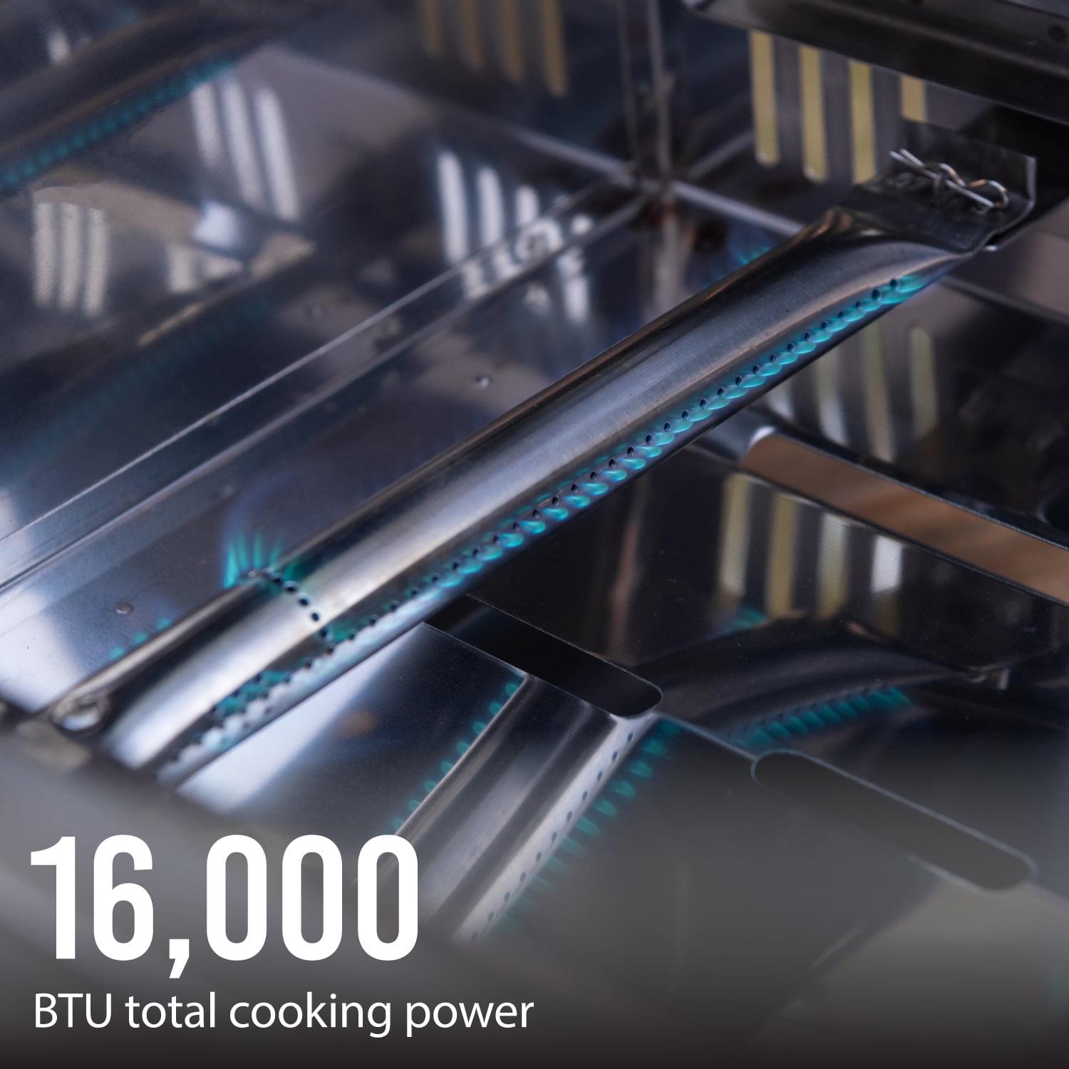 – Primary cooking area features 199 sq. in. of cooking space so you can grill up to 8 burgers or your favorite steak or chicken recipes