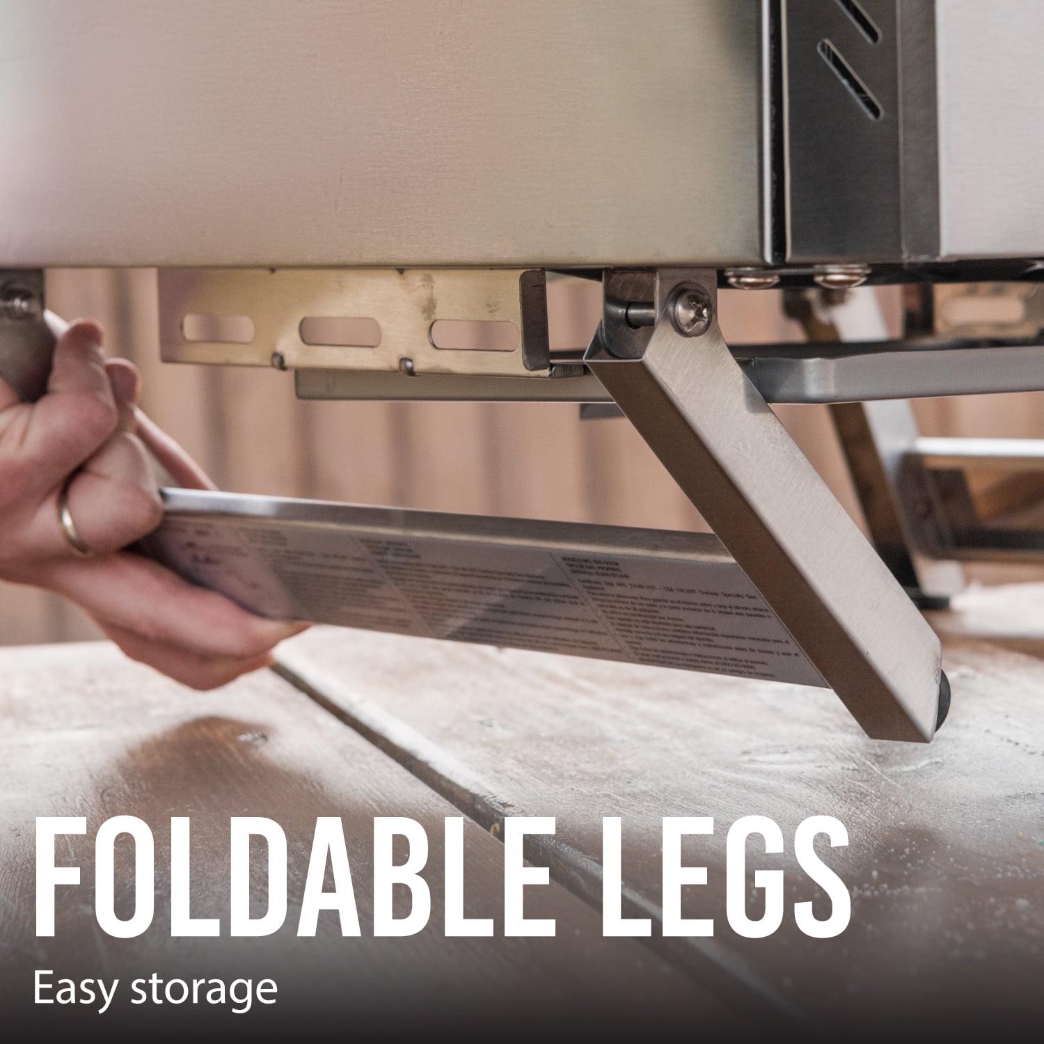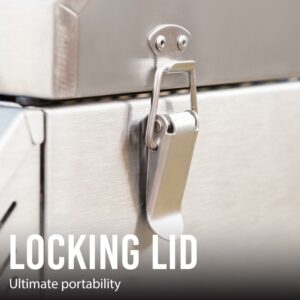 – Foldable legs and a locking lid makes transporting your 2-burner a walk in the park