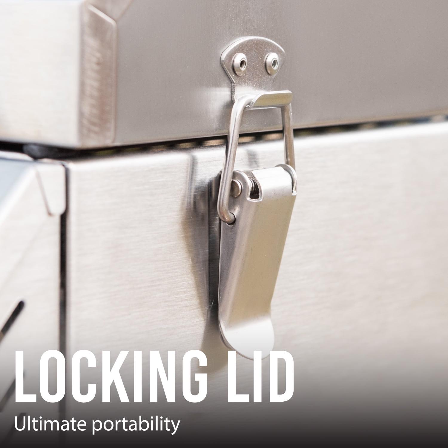 - Foldable legs and a locking lid makes transporting your 2-burner a walk in the park