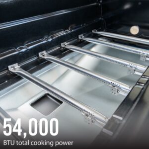 - Features durable stainless-steel burners for even heat