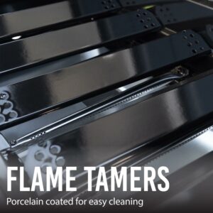 – A removable grease tray allows drippings to be funneled away from the burners and reduces your risk of flare-ups.