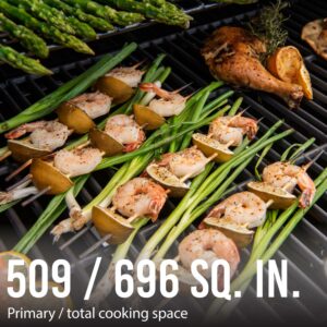 – Primary cooking area features 509 sq. in. of space so you can grill up to 29 burgers or your favorite steak or chicken recipes.