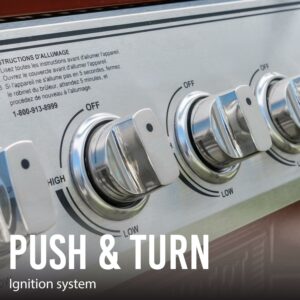 – A push and turn ignition system means you can light your burners with the simple push and turn of your control knob.