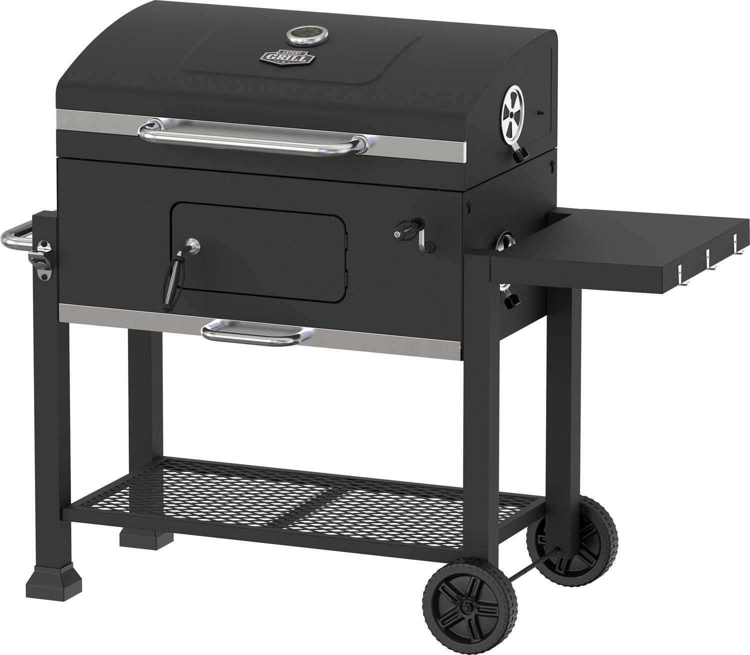 – Charcoal grill with black powder coated finish;490 sq. in.