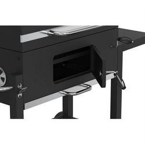 With plenty of grill space to cook for all your family and friends, the Expert Grill Heavy Duty 32 Charcoal Grill will be the star at your next backyard barbecue or gathering. This cart-style grill has a 490sq. in. main cooking surface that s large enough to grill 25 burgers at once plus a 276 sq. in. warming rack. This grill is equipped with heavy-duty cast iron cooking grates that retain heat exceptionally well and produce restaurant-quality sear marks on steaks, burgers, chicken, and more. Other features include a charcoal access door, an adjustable charcoal pan, and built-in, easy-to-read lid thermometer. The foldable side shelf offers space for platters, marinades, and more, and the shelf has three hooks to keep grill tools and utensils within easy reach. Wheels on the right legs offer easy maneuverability around a porch, patio, or deck. The Expert Grill Heavy Duty 32 Charcoal Grill is available in black with a durable, powder-coated finish.