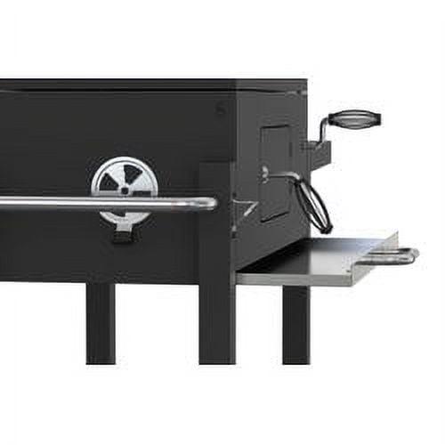 - Adjust charcoal pan height with crank to customize cooking temperatures;