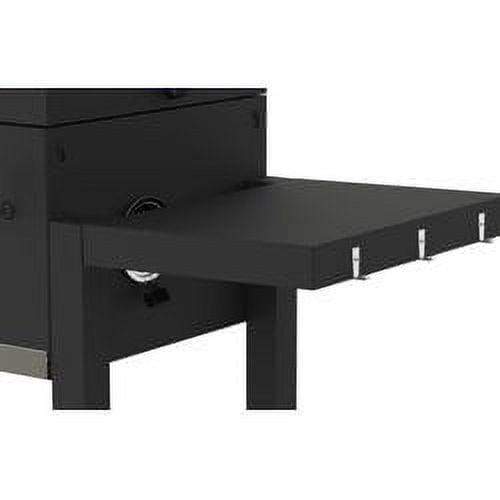 - Foldable side shelf with three hanging hooks for utensil storage;