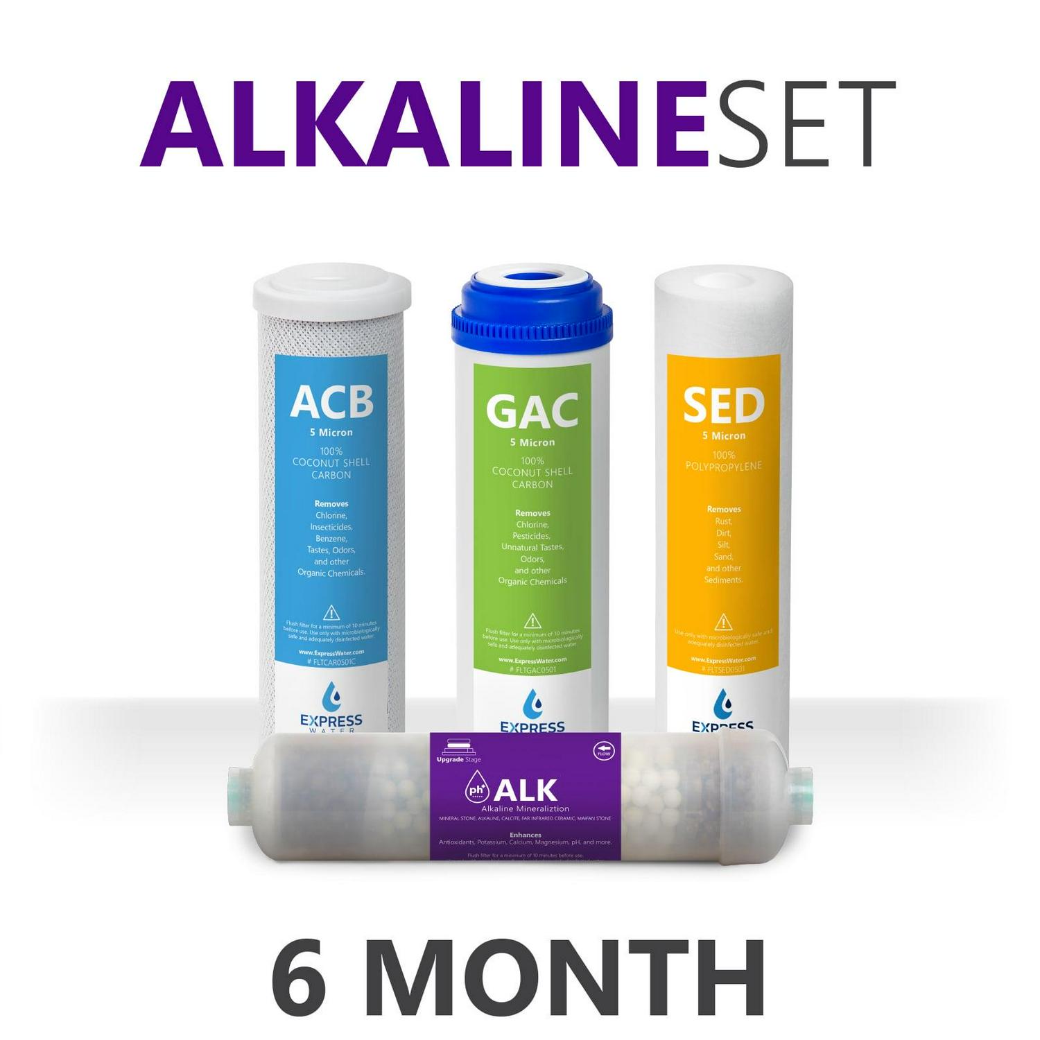 Operates on 40-80 PSI water pressure, you may need a Booster Pump or Pressure Regulator depending on your water pressure. The water is cleaner and more convenient than any pitcher, faucet filter, or countertop systems. Express Water s Alkaline 6 Month Filter Set FLTSETALK04Q is the filter solution for your drinking water.