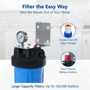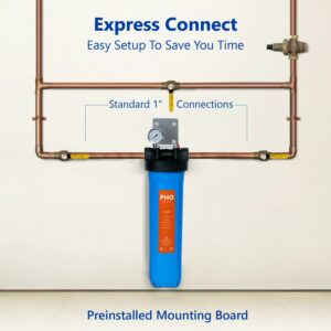 Express Water Anti Scale Whole House Water Filter a Home Water Filtration System a Polyphosphate Conditioner a includes Pressure Gauge, Easy Release, and 1a Inch Connections