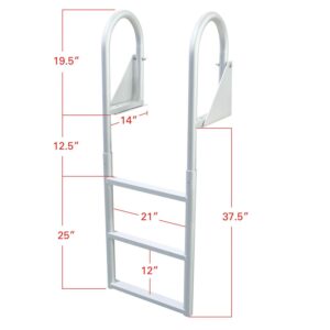 3-step flip-up dock ladder,Sturdy, welded aluminum construction to withstand the harsh marine environment,Quick, easy assembly using common hand tools,Flip-up design offers the convenience of a permanently mounted ladder that can be easily removed from the water,Two-year