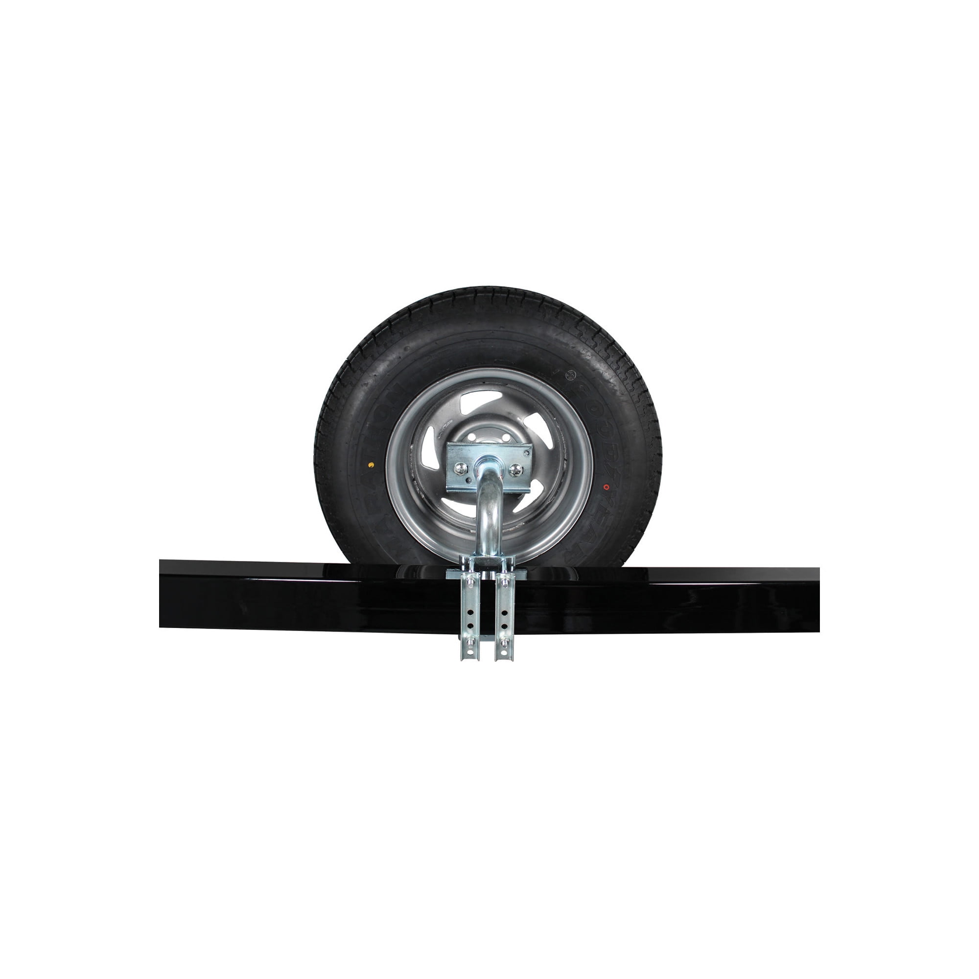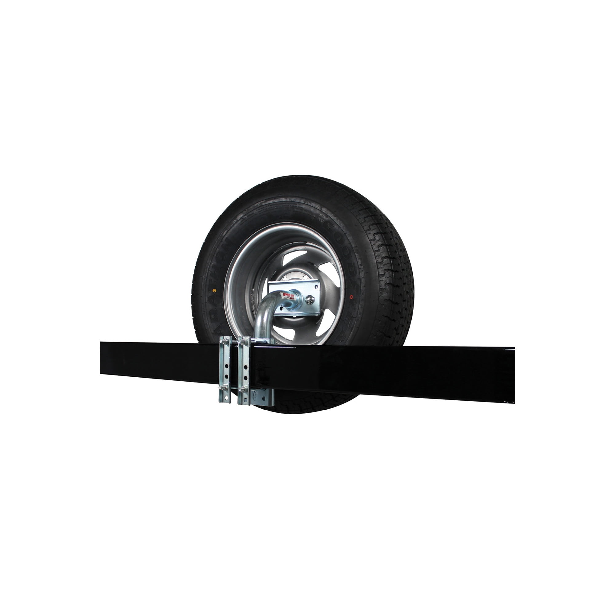 A spare tire carrier is the best way to insure that you’re never the guy stuck by the side of the road. This model features durable steel construction with zinc plating for corrosion resistance, and a bolt-on design for easy installation (no cutting, no drilling) on trailer tongues 1.75″ to 3″ wide x 5″ high. Fits 4, 5, and 6 lug wheels. Not intended for applications where the trailer will be in contact with saltwater or brackish water. Stud Size: 1/2-13 x 45. Two-year replacement warranty.