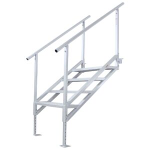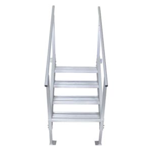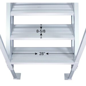 Bigger is better! Building off the success of our standard dock stair (3005.3843 4-Step and 3005.3846 6-Step), we’ve literally expanded our dock stairs to include the Jumbo-Tread option! With a massive 28″ step width and 8-5/8″ step depth, the Jumbo-Tread Stair provides a comfortable climb or decent for people of any size. Extreme Max dock steps get you in and out of the water with maximum safety. The gentle incline and hand rails make use safe, stable and comfortable. They are perfect near shoreline, or at a variety of water depths. Steps have 12″ adjustable legs to fit your application perfectly, and each step features non-slip traction grips. Great for kids, older or physically limited adults, larger adults, and even pets. Premium aluminum construction is corrosion-resistant in freshwater applications; oxidation may occur in brackish and saltwater. 500 lb. capacity. Due to variations in dock construction and design, mounting hardware is sold separately.