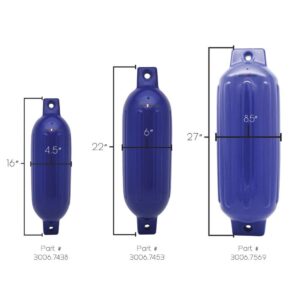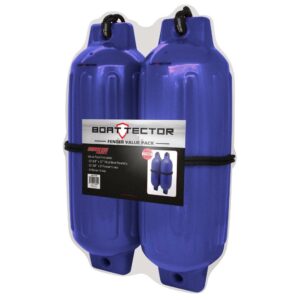 Protect your boat without putting a dent in your wallet! BoatTector fenders offer superior protection for your docked boat, taking the beating of wind and waves so your boat doesn’t have to. The sturdy PVC walls are designed with reinforced ribs and consistent wall thickness for durability and abrasion resistance. Each fender is equipped with a needle valve to allowing you to inflate or deflate the fender to the desired PSI and a molded eyelet to ensure fender longevity and strength. Included in the Value Pack are two premium 8.5″ x 27″ BoatTector fenders and two 3/8″ x 5′ fender lines. Needle valve pump not included.