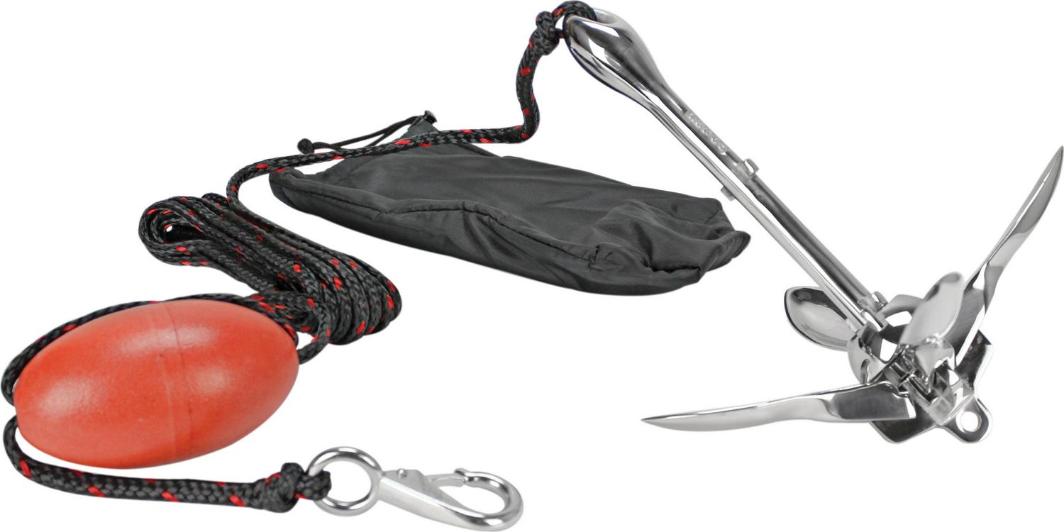 – Complete PWC grapnel anchor kit includes 3.5 lbs. anchor, 25′ rope and snap hook, marker buoy and storage bag