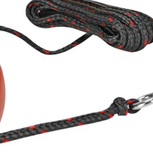 – Rope: 25′ hollow braid polyethlyene rope with steel snap hook