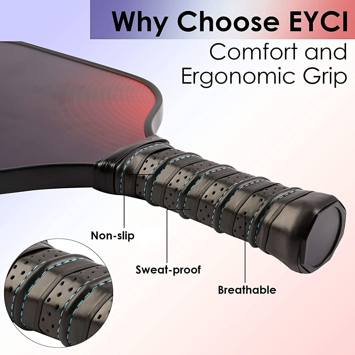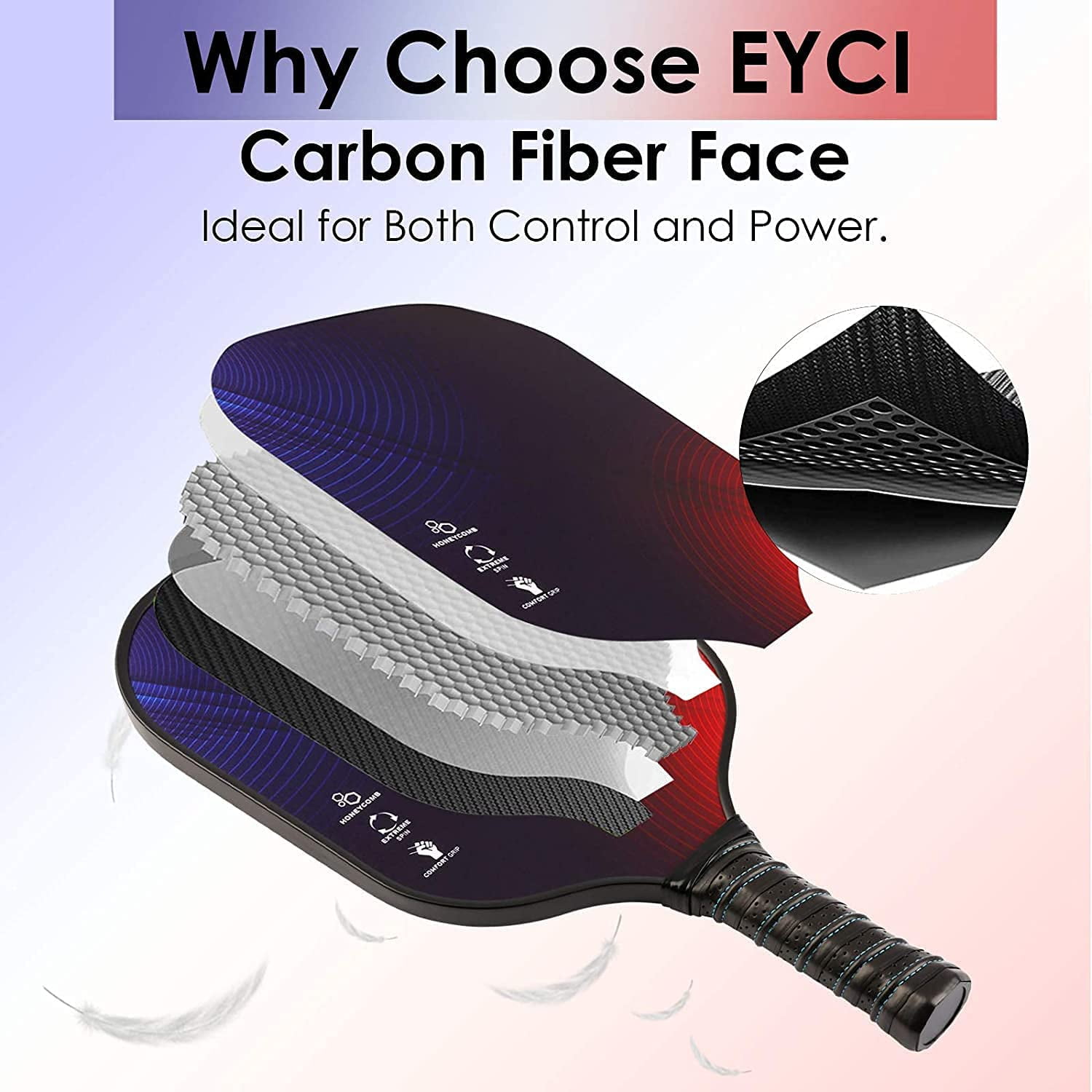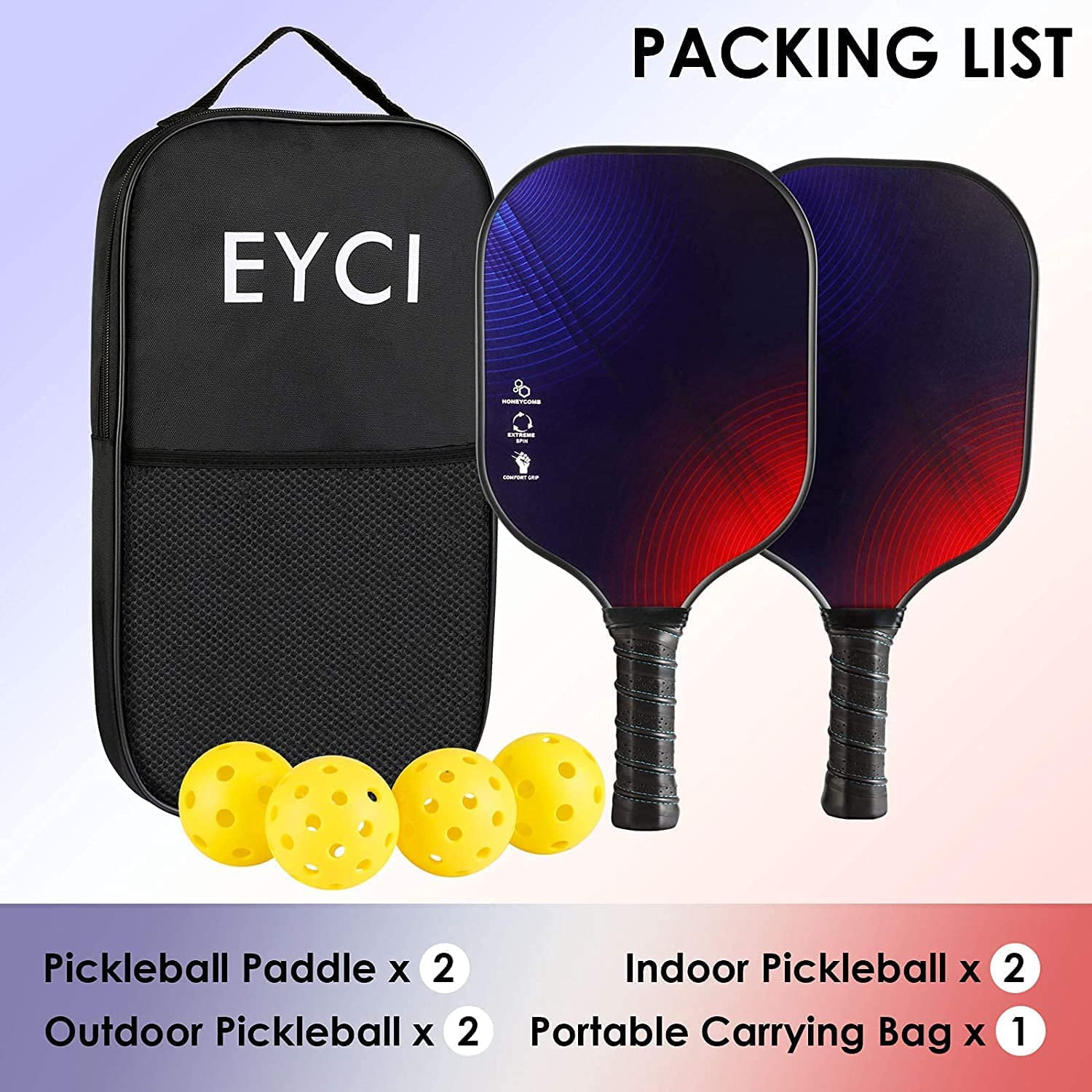 EYCI Graphite Carbonfiber Pickleball Paddle Set – 2 Fiberglass Surface Rackets, 4 Pickleballs for Indoor and Outdoor