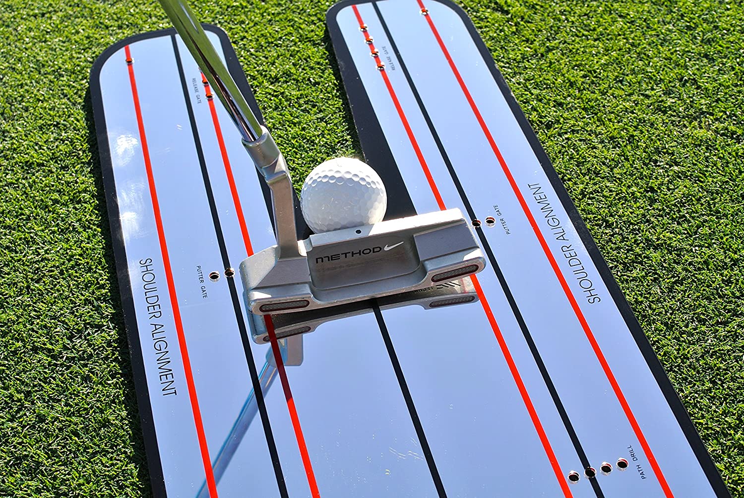 HOLES FOR TEES – Insert Tees at front for ‘gate drill’ or towards the back for back-swing control & This training aid is small and compact in size and comes with a soft carry bag.,REFLECTIVE SURFACE -The acrylic mirror face gives instant feedback on eye position, putter setup and putter stroke. The putting trainer gives instant feedback each time you putt out helping to improve all aspects of your putting game,Practice Anywhere – Large 9.25 inch x 17.5 inch the putting alignment mirror is perfect to use on your putting mat at home or on the course putting green to groove your putting stroke. This golf putting aid is small enough to easily fit into any golf bag,Make More Putts – Practice the perfect putting setup using the putting mirrors alignment lines, guidelines and mirror face and will have the perfect starting line, face angle, and eye placement. This putting aid will help you practice the perfect putt every time,PUTTER GATE SLOTS – Let you set up a gate of tees for the toe and heel of the putter to learn to swing and create ‘sweet spot’ in the center of the putter face.