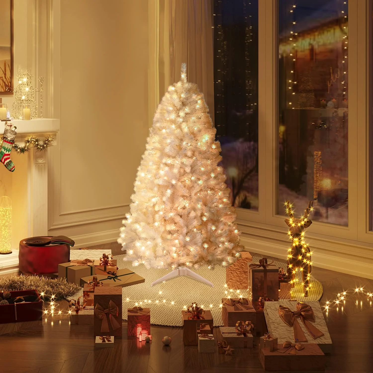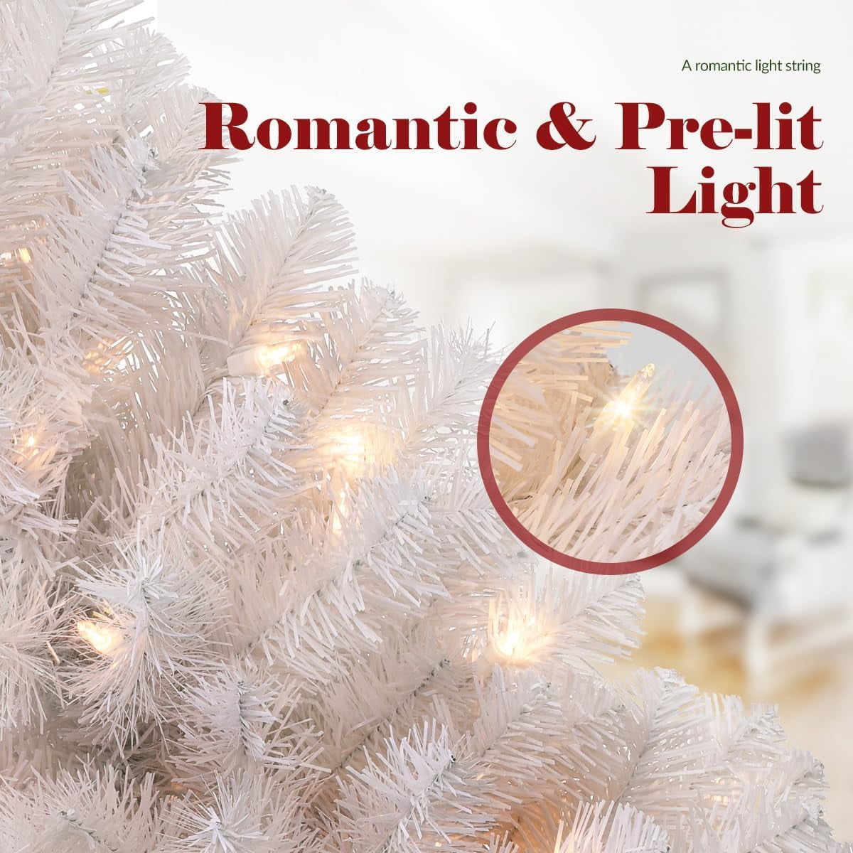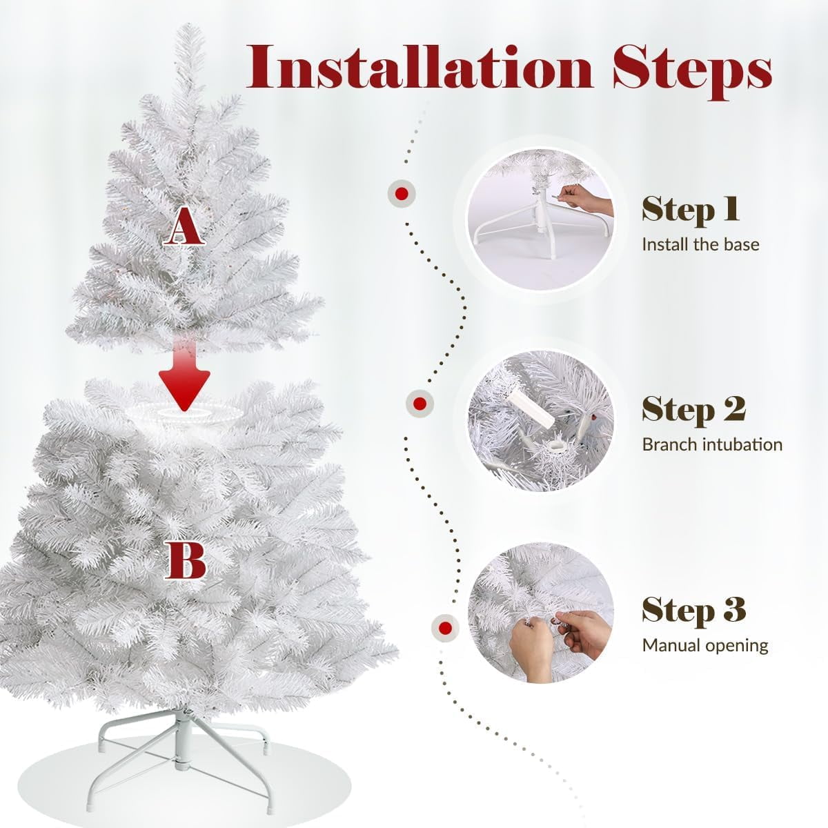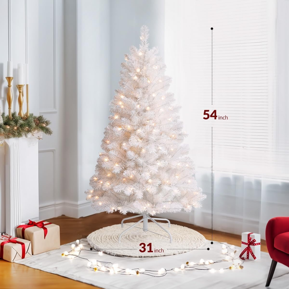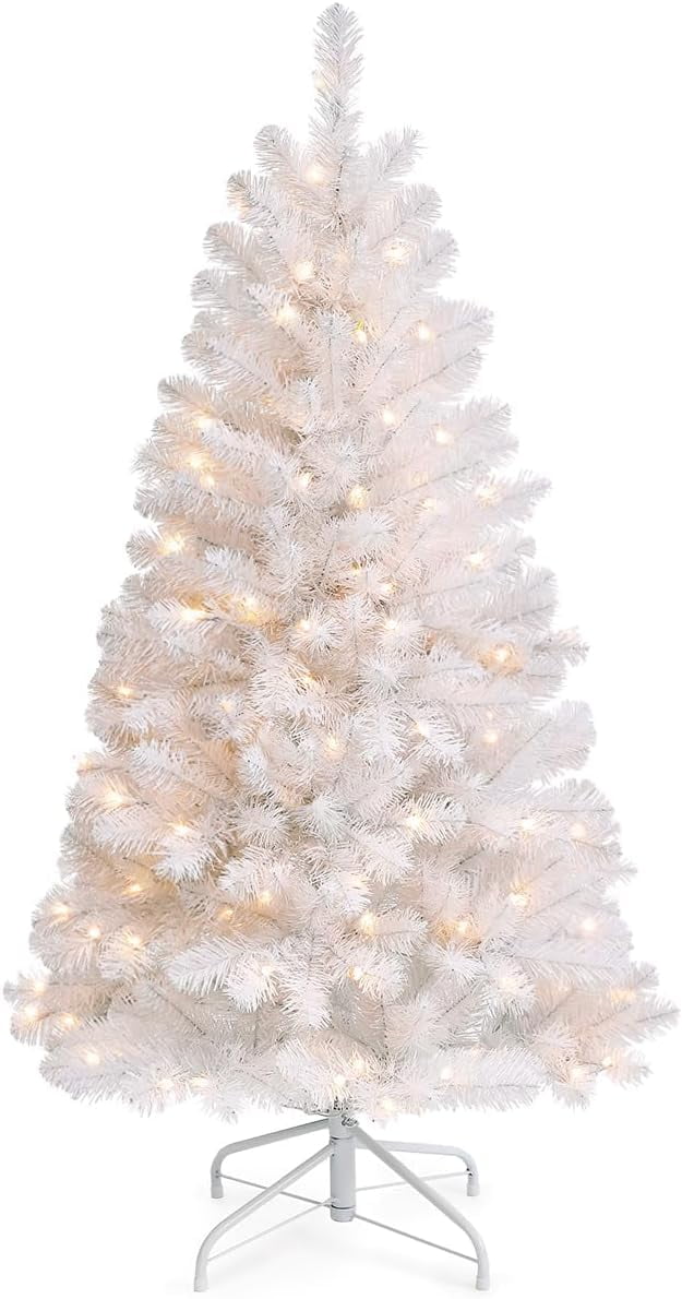 Jostyle 4.5FT Pre-lit White Christmas Tree with 150 Warm White Lights & 330 Branch Tips Artificial Xmas Trees