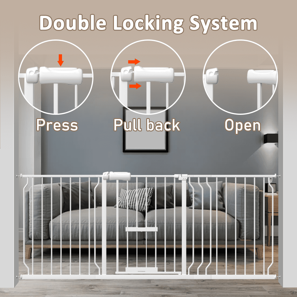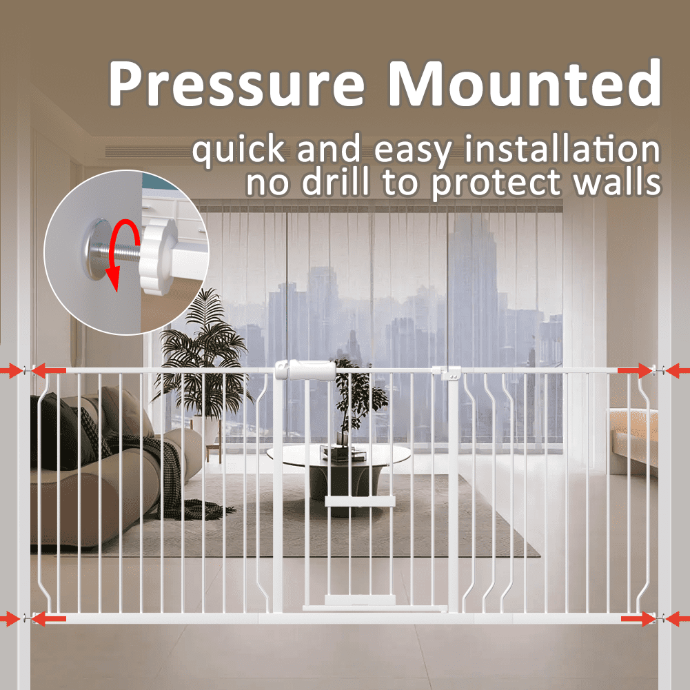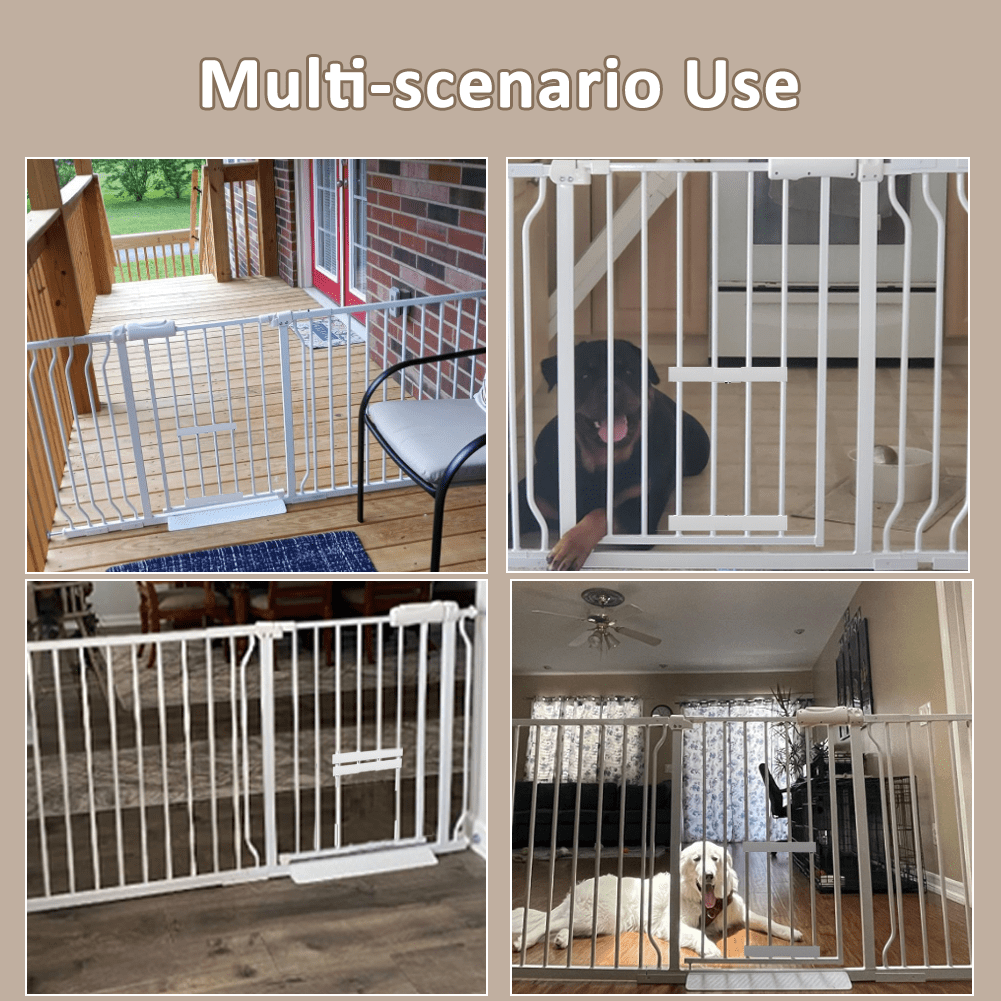 Provides a secure barrier to keep children and pets safe from potentially hazardous areas Features a built-in cat door for easy access for feline friends while keeping larger pets and babies contained Adjustable width of 24″ to 29″ to fit a variety of openings Pressure mount design eliminates the need for drilling or permanent installation Crafted from durable and sturdy materials for long-lasting performance Versatile, easy installation, and reliable construction make it a must-have product for pet-loving households.