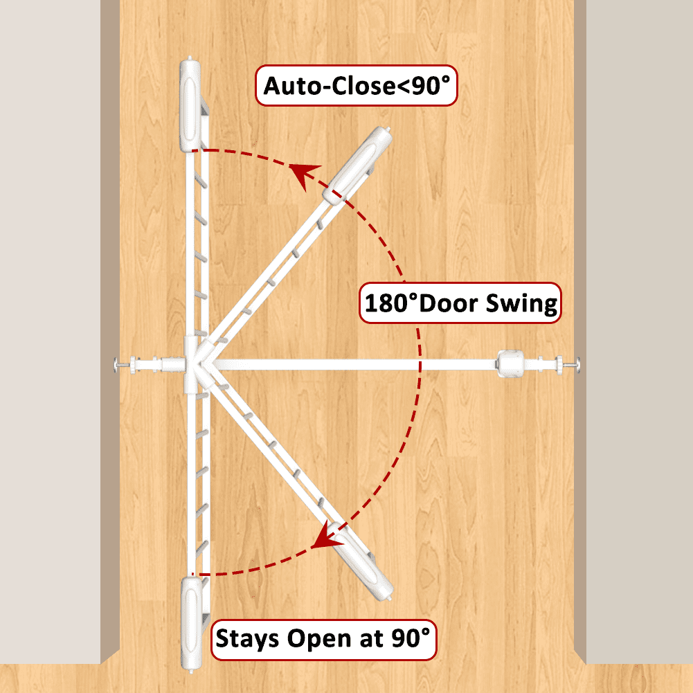 Adjustable width to fit openings ranging from 24.02 inches to 29.02 inches Pressure-mounted design for easy installation and removal without damaging walls Sturdy metal construction for durability and stability Can be used as a dog gate with a height of 30 inches Sleek and modern white metal design that blends with any interior decor Provides security, convenience, and flexibility for both child safety and pet containment
