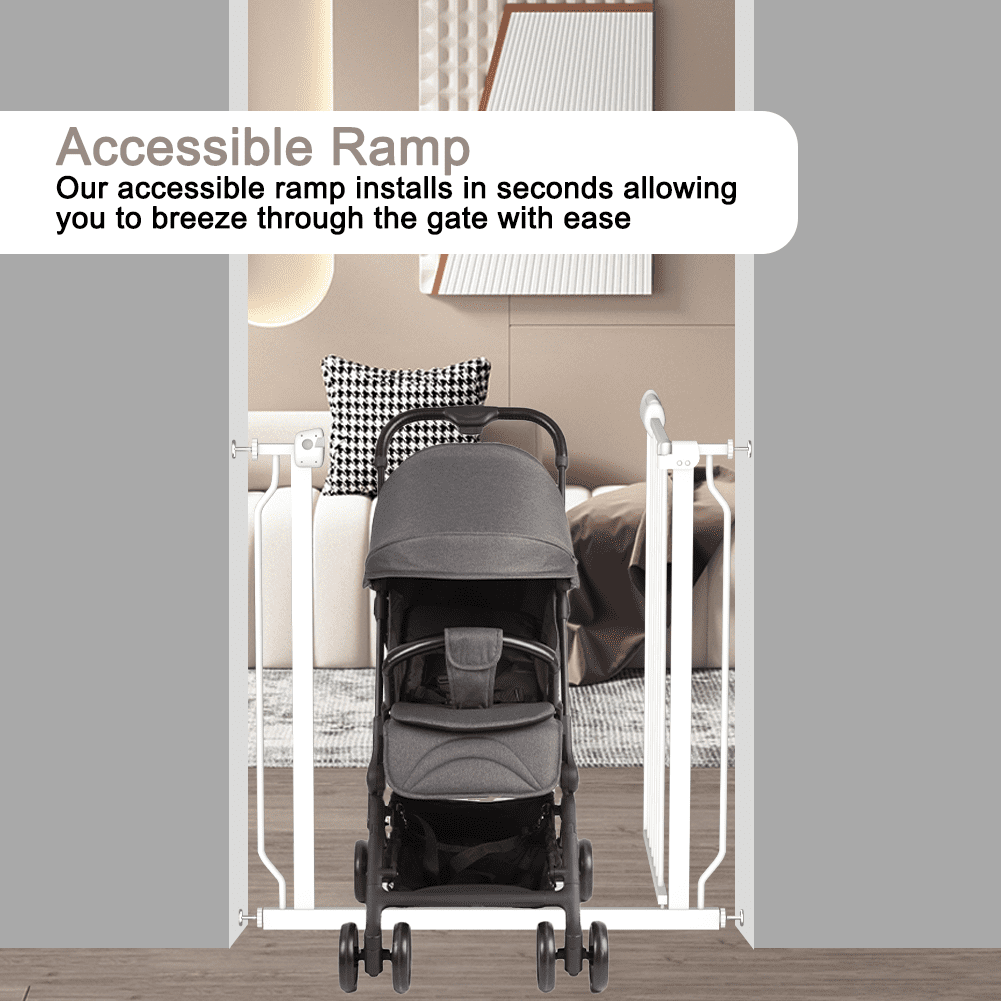 The Fairy Baby Extra Wide Baby Safety Gate is a reliable and versatile solution to ensure the safety of your little one. Designed with extra width, this gate can be easily adjusted to fit openings ranging from 24.02 inches to 29.02 inches, making it ideal for wider doorways, hallways, or staircases in your home. Safety is paramount, and this gate is built to provide utmost protection for your child. It features a pressure-mounted design, eliminating the need for drilling or permanent installation. This means you can easily set it up wherever needed and remove it when not in use, without leaving any marks or damage to your walls. The sturdy metal construction further ensures durability and stability, giving you peace of mind knowing that your baby is secure. With a height of 30 inches the same feature caters to pet owners, allowing you to use it as a dog gate to separate your furry friends from certain spaces in your home. This safety gate not only guarantees security but also boasts a sleek and modern white metal design that seamlessly blends with any interior decor. Its unobtrusive appearance makes it an excellent choice for homes with varying styles. In summary, the Fairy Baby Extra Wide Baby Safety Gate is a pressure-mounted, tall, and extra-wide gate that prioritizes your child’s safety while offering convenience and flexibility. Whether it’s establishing a safe zone for your baby or ensuring your pets stay away from certain areas, this gate provides a reliable and stylish solution for your home.