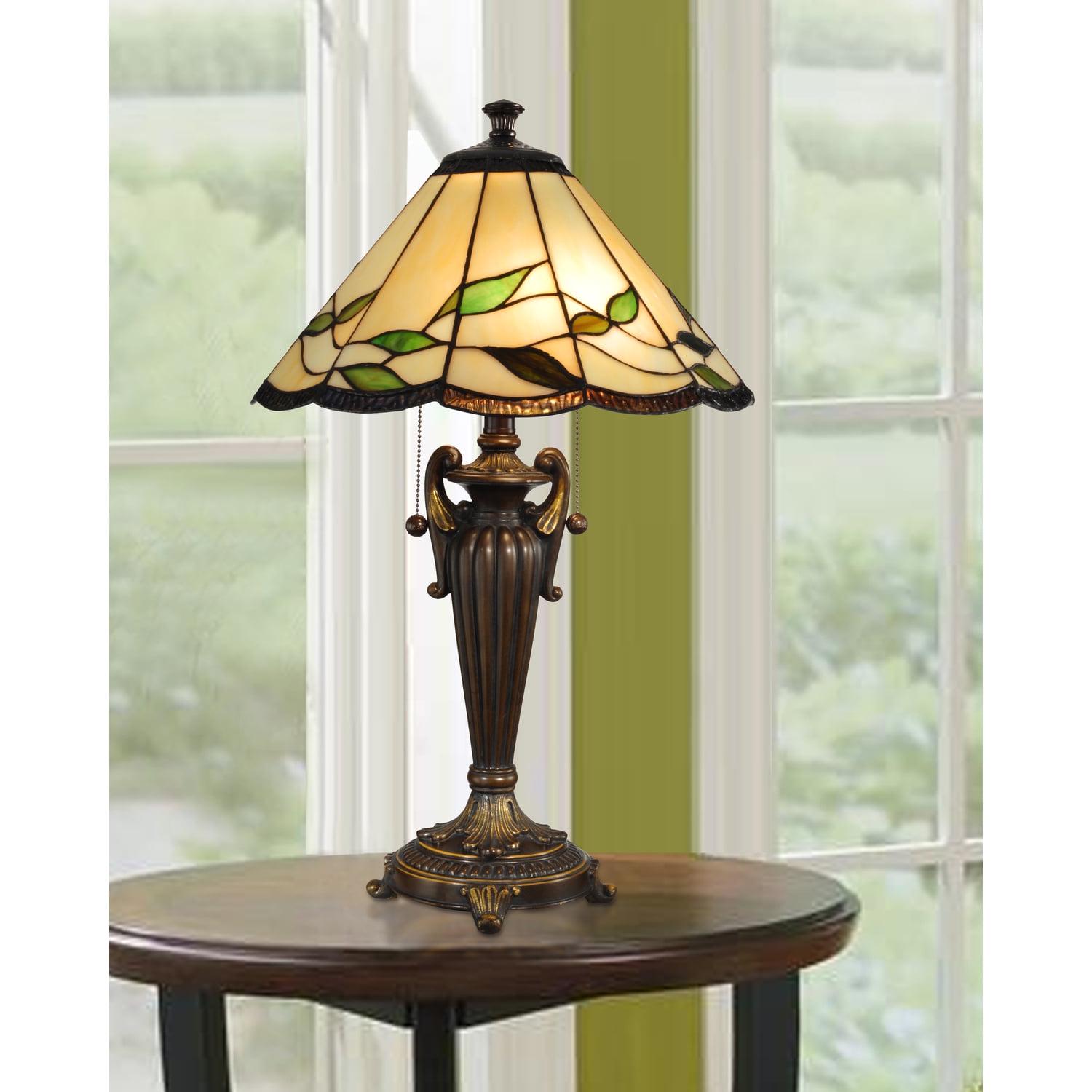 The gracious charm of our Falhouse table lamp will add an instant decorator’s touch to any room in your home or office. The conical shade is crafted of large panels of buttery light amber, which are separated by broad bands of vertical filigree. Lush vines of verdant green leaves are intertwined around the bottom half of the shade. A ribbon of dark amber runs along the contours of the shade’s gently scalloped edge, which adds an extra element of warmth when the fixture is lit. The statuesque base is finely reeded with side scrolls tapering down to the meticulously detailed footed pedestal. Our Falhouse table lamp is ideal for end tables, nightstands or larger desks and will beautifully illuminate your home or office for many years to come.