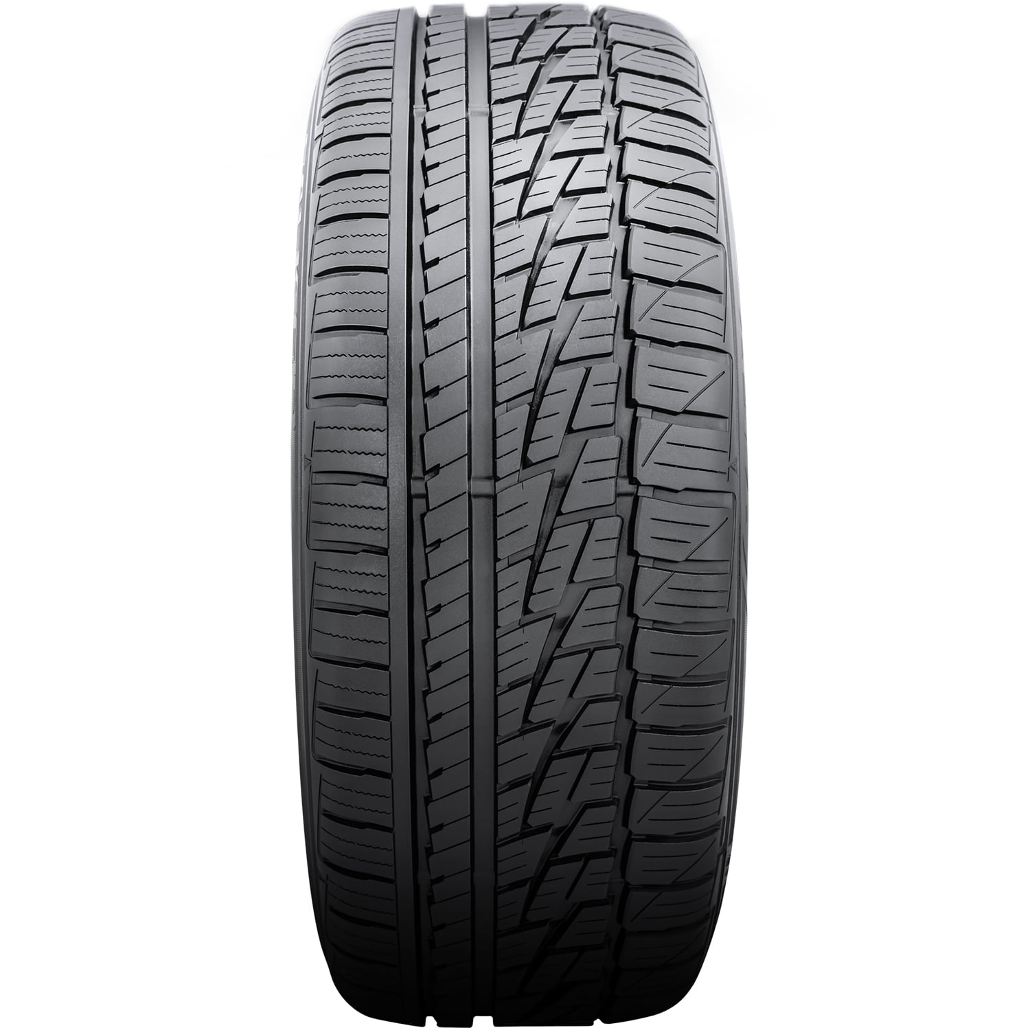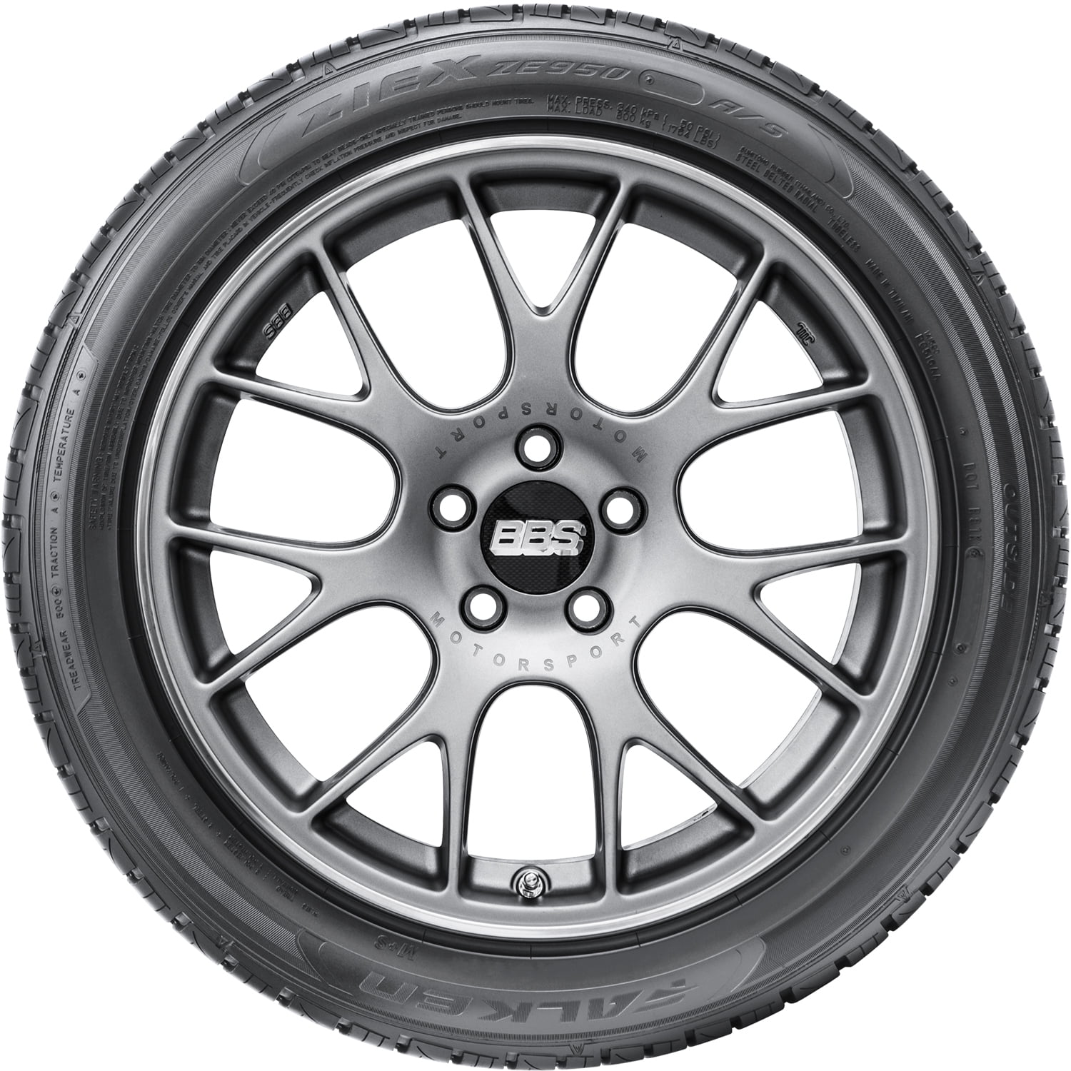 Attention! Due to the size of the tires, Packages might be SEPARATED in the courier facility and not be DELIVERED on the SAME DAY, even though we do ship them together. Tracking information can be checked by logging on to the courier website with the master tracking number you will receive via email. For example, you can receive 3 tires in one day and the 4th one the next day or the day after, or one tire in one day and the second one day after. We understand that this is a big inconvenience for our buyers, however, this is ABSOLUTELY out of our control. Falken Ziex ZE950 A/S FEATURES AND BENEFITS Longer lasting tread life All weather traction Enhanced winter traction Improved cornering ability Road Hazard Warranty offered by Falken 30 Day Ride Guarantee offered by Falken OVERVIEW The Falken Ziex ZE950 A/S is a performance and high performance, depending on the speed rating of the specific tire size, tire made for passenger vehicles and SUVs. Falken offers a 45,000 mile treadwear warranty with W speed rated sizes and a 65,000 mile treadwear warranty with the H and T speed rated sizes of this tire model. Falken offers a road hazard warranty with this tire. Road hazard damage is harm caused to the tire during its performance. It can occur in the form of punctures, bruises, or impact breaks when the tire is driven in normal driving conditions on a federal, state, and/or locally maintained road. Falken’s road hazard covers the first 3/32nds of the tire’s tread life or 2 years from the date of purchase (whichever comes first). The road hazard warranty is honored if the damage is unrepairable per the USTMA puncture repair guidelines. Additional restrictions and fees may apply. Falken also offers a Thirty (30) Day Ride Guarantee or 1,000 miles to try this model out. In case you are not satisfied with your purchase, Falken provides this warranty for 30 days or 1,000 miles, whichever comes first. The returned tires must not show damage due to road hazards, incorrect operation or maintenance, or damage caused by external conditions. This offer is for tires operated in normal highway conditions within the U.S. or Canada and it excludes tires used in commercial service or racing applications. The tires must be returned to the original place of purchase, with the sales invoice and the proper documentation. The tire offers excellent all weather traction. Thanks to the Dynamic Range Technology (DRT) with the silica-based tread compound that is exclusive to Falken, the tire grips the road remarkably well in all weather conditions, including in winter. The winter traction of the tire is further enhanced with the 3D canyon sipes in the tread pattern. This design provides extra biting edges during braking in snow or on ice, improving the safety of the drive. The tread design’s wide angled tread slots allow for snow to be packed into the middle of the tread pattern boosting the snow traction. The circumferential grooves on the tire pattern channel water from the footprint and increase the tire’s hydroplaning resistance.