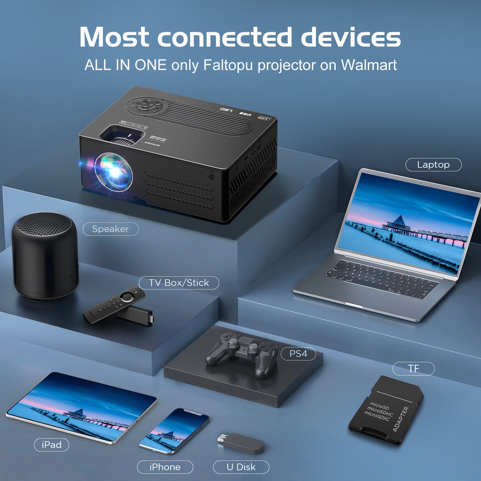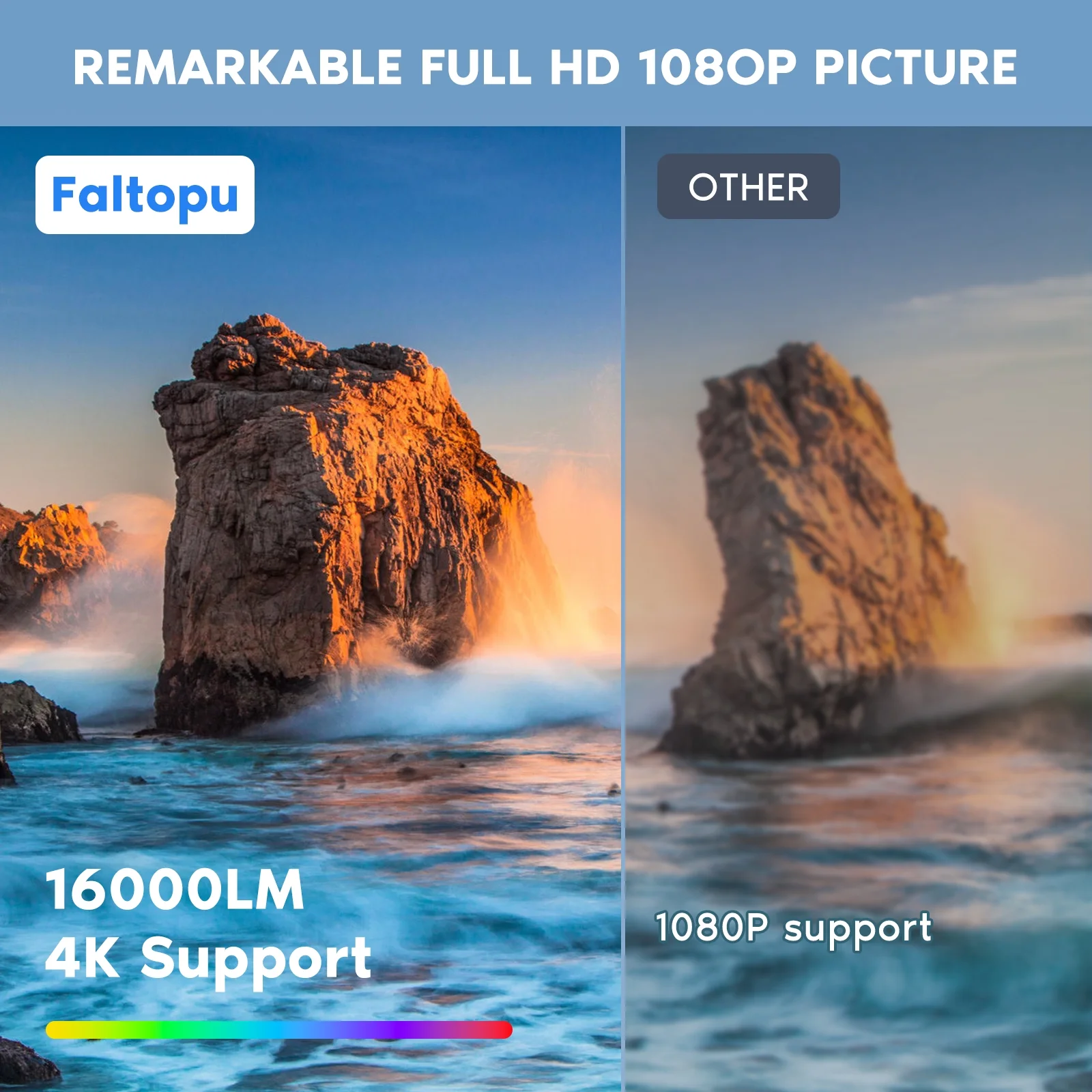 We have been deeply involved in the projection industry for over a decade, manufacturing and selling projectors since 2010. In 2021, we independently established the Faltopu brand, focusing on the production and sale of mini home projectors. 【Native 1080P & 4K Supported】The Faltopu projector can deliver you Full HD movies with 1920*1080 native resolution, which is 4k supported.With a 4:3/16:9 aspect ratio and a lamp lifespan of 80,000 hours. This home and outdoor projector combines to deliver incredible clarity, contrast and color to every detail of the display. 【100″Screen and Portable Bag Included】 Our Faltopu 1080P Full HD projector includes a 100″projector screen and a beautiful portable bag. The Projector is the first all-in-one projector ever on . 【2024 Upgraded WiFi Screen Mirroring】Faltopu upgraded WiFi projector supports 2.4G+5G WiFi connectivity and is designed to be compatible with Android/iOS/Windows. You can connect your device to the smart projector at any time through screen mirroring. Let you enjoy the fun of phone’s screencasting, screen sharing and gaming. (Note: If you want to watch copyrighted videos, you’ll need to connect via Fire TV Stick, HDMI, Chrome-cast or Roku). 【Two-way Bluetooth Transmission】1. connected to a mobile device used as a Hi-Fi stereo speaker; 2. paired with an external Bluetooth speaker, soundbar, headset. With Faltopu bluetooth projector, Whether you’re at home or at a movie night with families, you can enjoy powerful and dynamic audio that enhances your entertainment experience. 【Electronic Zoom 50%-100%】This mini Bluetooth projector easily reduces the image size from 100% to 50% without moving the home theater projector with the help of the electronic scaling feature. The adjustable 50″-300″ screen gives you the freedom to customize the screen size to fit any space. 【100% Satisfaction Guarantee】Please feel free to contact us if you encounter any problems during use. The Faltopu team offers a 3-year warranty and a 100% satisfaction guarantee. Contact us within 7 days of purchase to activate your warranty extension!