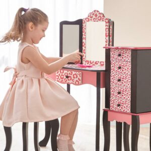 – KIDS VANITY SET: Features a pink and black design decorated with leopard print for a fun and functional addition to your child’s bedroom or play area.