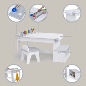 – INCLUDED: This complete artist set includes a table, art tray, storage bench and chair.