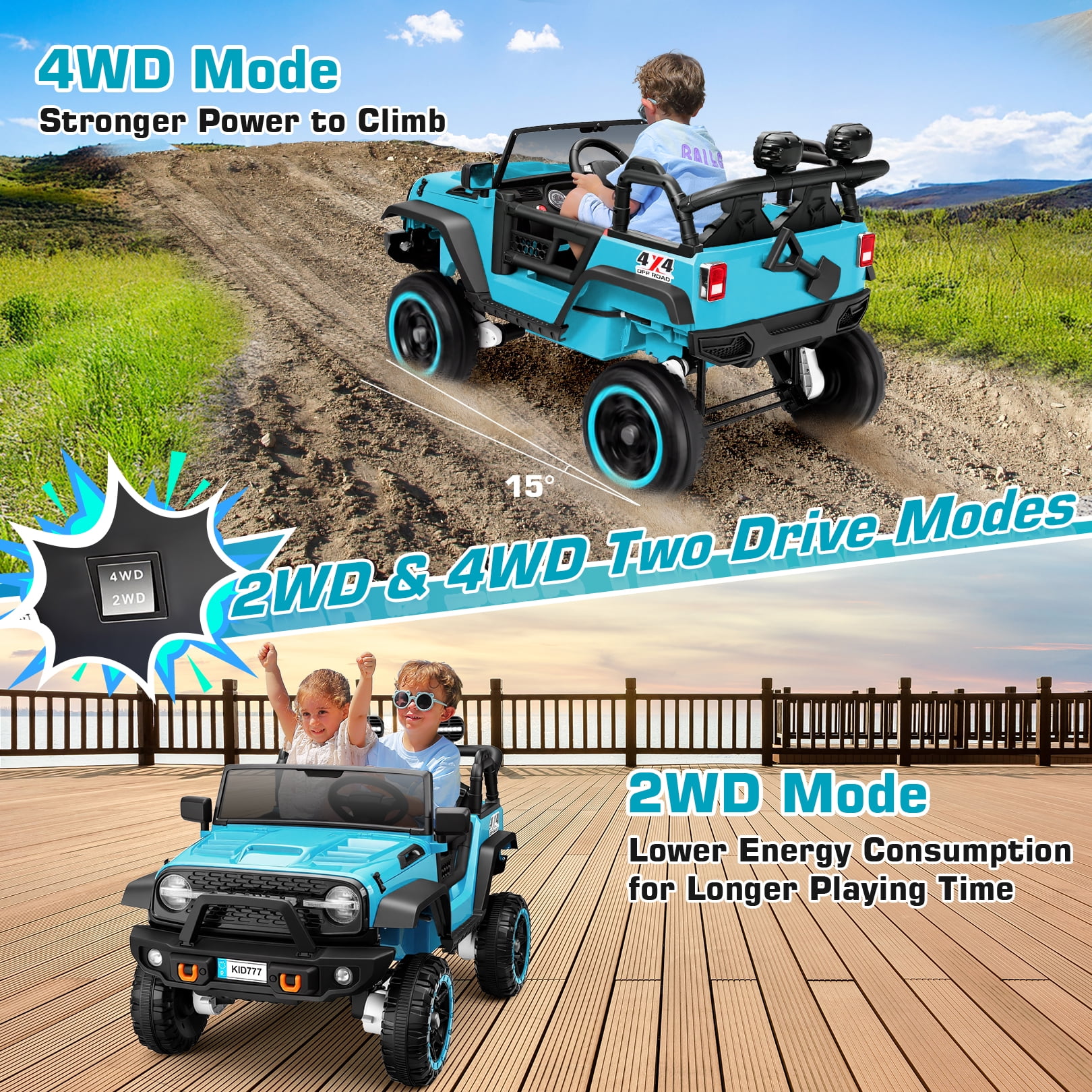 | Model | 4WD/2WD Switchable 7AH Battery Powered Ride on Toy |