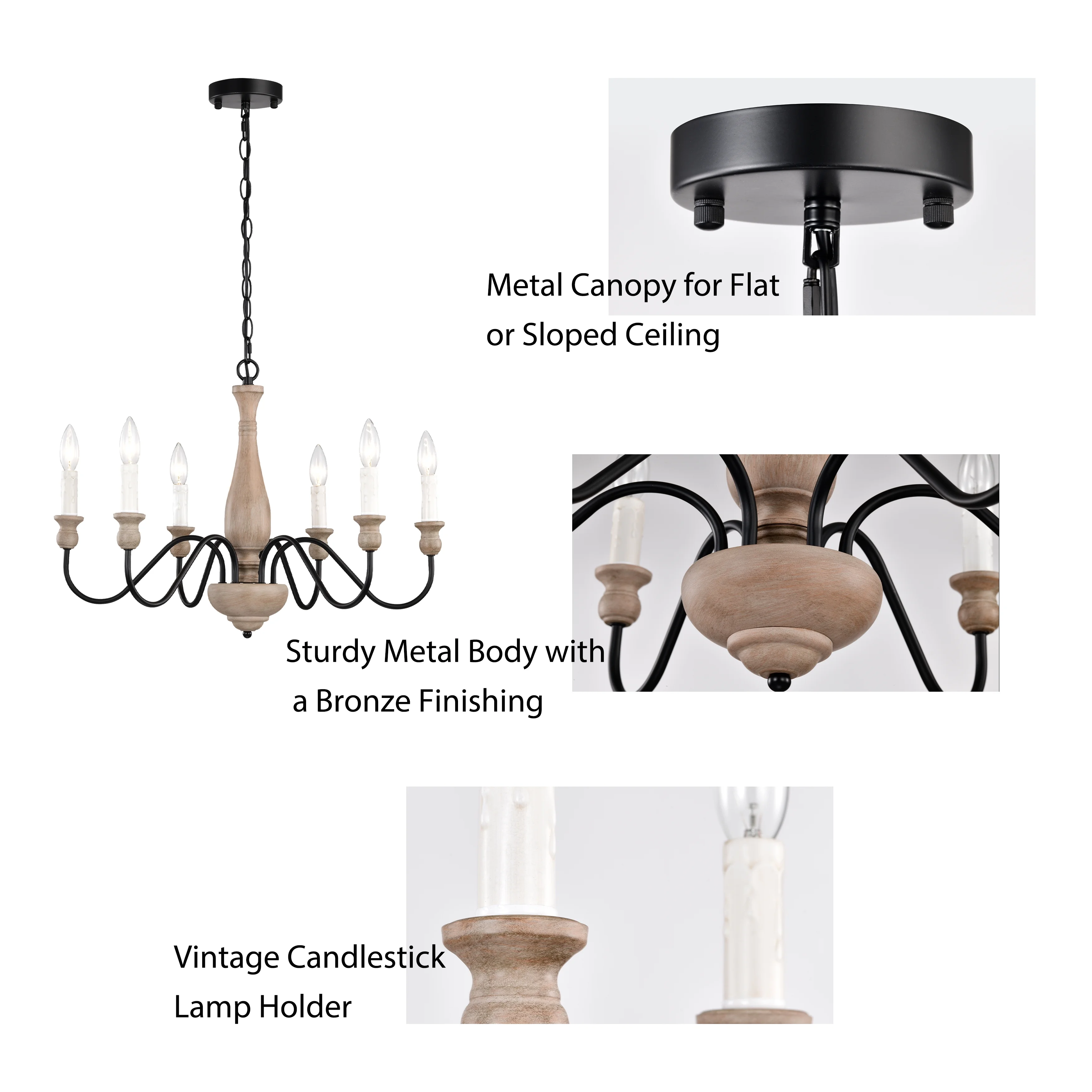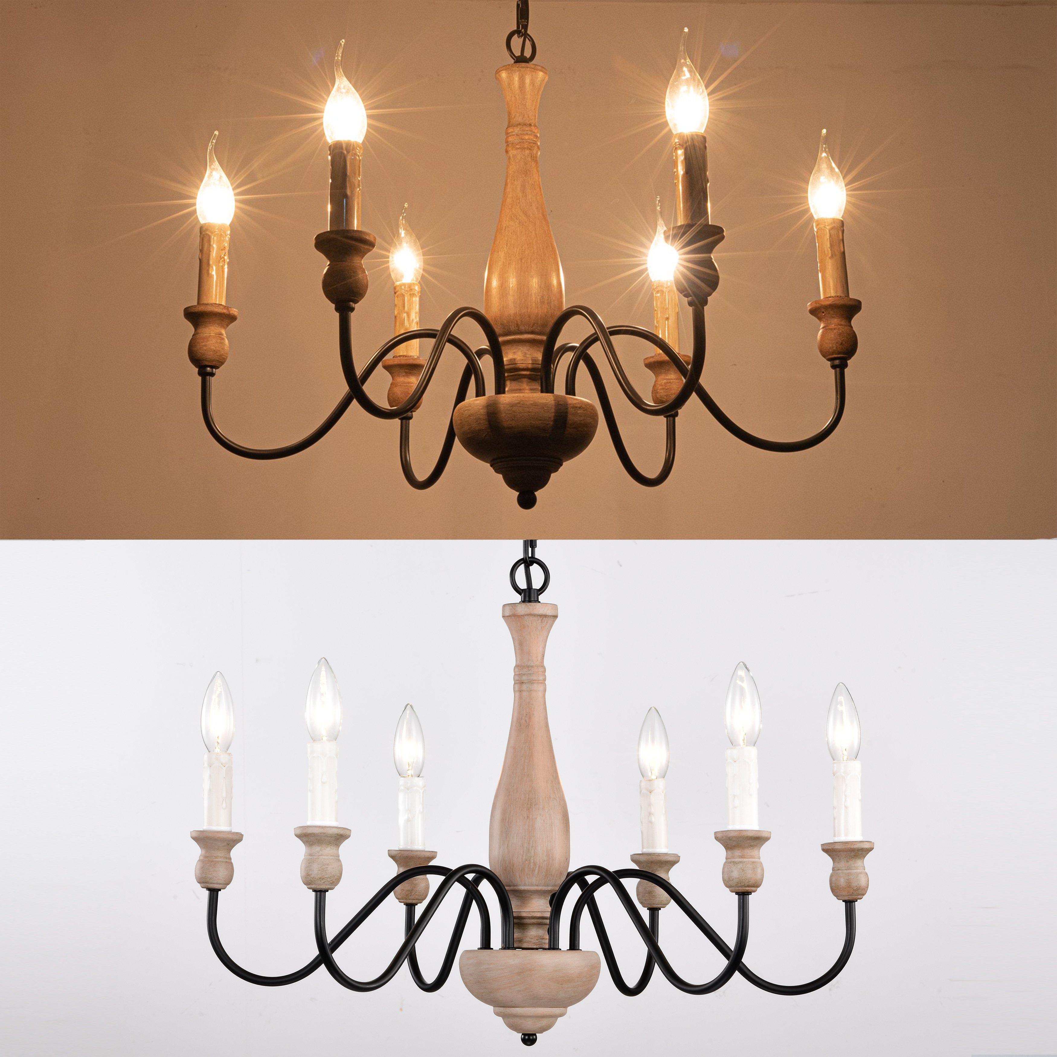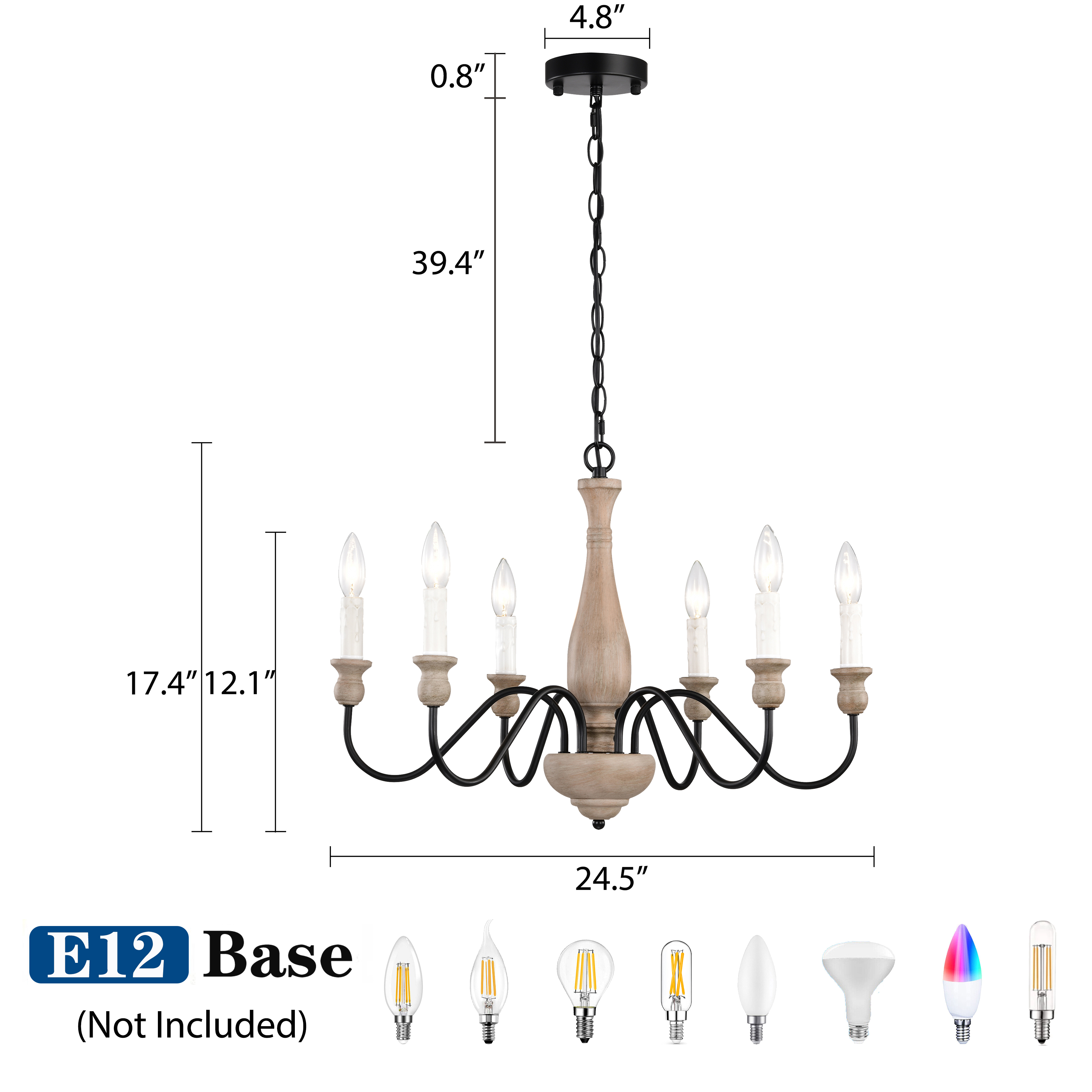Unique Design: Pendant ceiling light is made of high quality metal with matt black finish, which is strong and durable. The bronze chandelier is also equipped with 6 candle-shaped lamp holders made of wood, placed on 6 S-shaped black iron arms. Bring a European aristocratic feel to your house. Wide range of applications: This attractive French country style pendant light has a rustic, industrial and retro look, perfect for dining room, living room, kitchen island, entryway, hallway, hallway stairs and more. Bulb requirements: This pendant lighting for kitchen island needs 6 bulbs with E12 standard base, max 40W. (bulb not included) Easy installation: The rustic pendant light fixture comes with all the mounting hardware and installation instructions to help you easily complete the assembly and installation. Adjust the height: The chain end of the pendant light for dining room has a screw cap that can be opened and then hooked to any part of the chain for length adjustment. You can adjust the height of the farmhouse chandelier according to your needs. About the retro chandelier: If you have any problem, please feel free to contact us.
