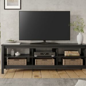 Display your TV in style with this 70-inch TV stand. Crafted from high-grade MDF for a rich, textured surface, this storage console features two open shelves on both sides for anything from your electronics to your home decor. This entertainment center mixes a traditional style with the on-trend farmhouse look with its simple design and will be a classic piece to your living room.