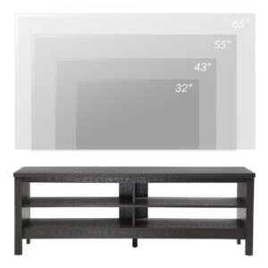 The black wood grain and simple lines on this tv stand make it look classic and elegant. It can be not only used as televison stands, also perfect for sofa table, entertainment center, media stand, storage console table, tv console etc. This TV stand is perfect for TVs up to 65 inch TV.4 open shelves with big capacity allow you to storage the books, magazines, CDs and any other media or gaming devices. The media console table made of high quality MDF which is durable and sturdy enough to be used for a long time. Plus, four wooden legs further enhance stability, preventing the TV stand from wobbling. Max load capacity: 175 lbs. The brown entertainmen center for 65 inch tv with smooth surface is waterproof and easy to keep clean with a damp cloth. The tv table is 3.9 in high height off the ground which adequate for robot vacuum cleaner can passing freely. No more headaches from dust under the cabinet.