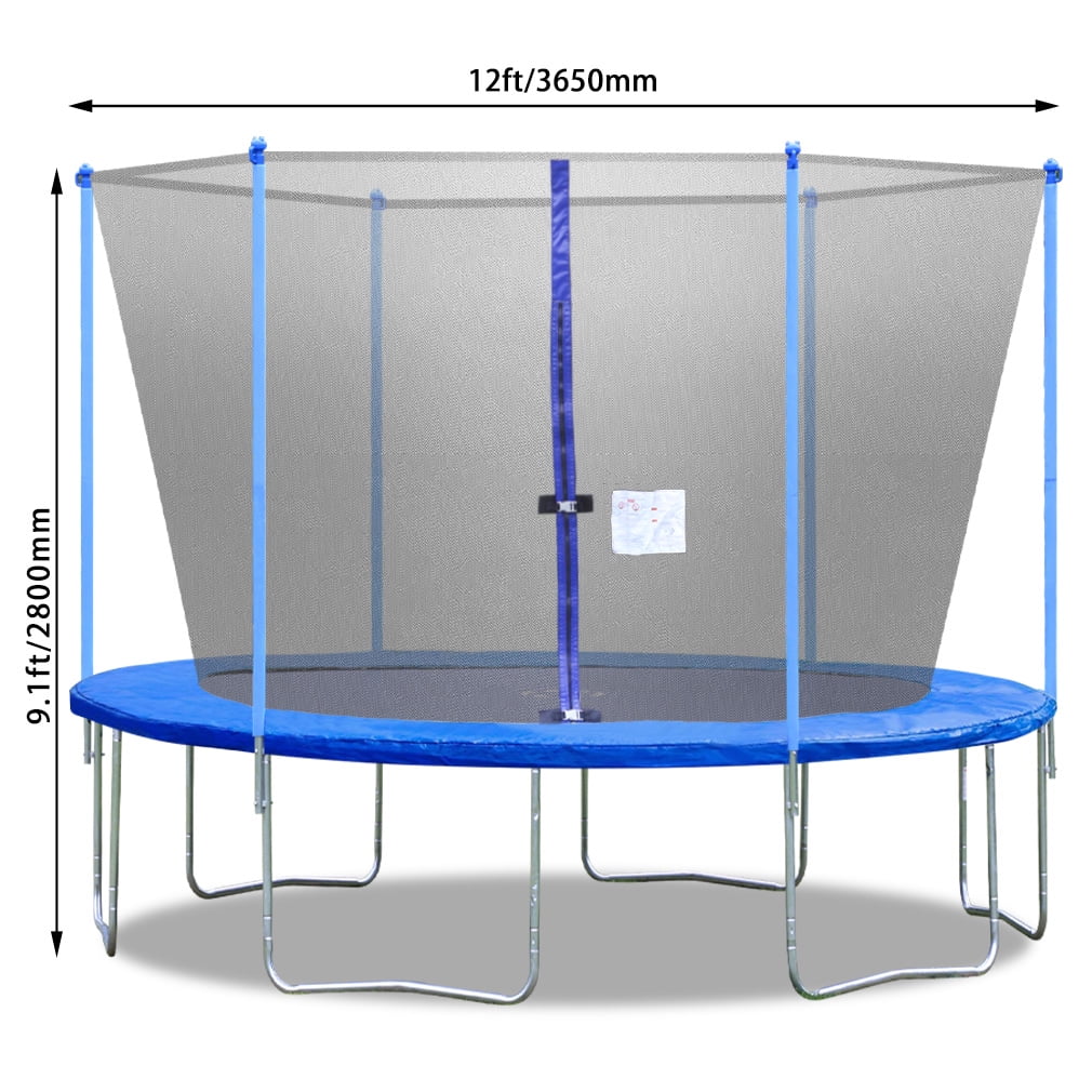 FDW 12 ft Trampoline Combo Jump Safety Enclosure Net W/Spring Pad ,Blue