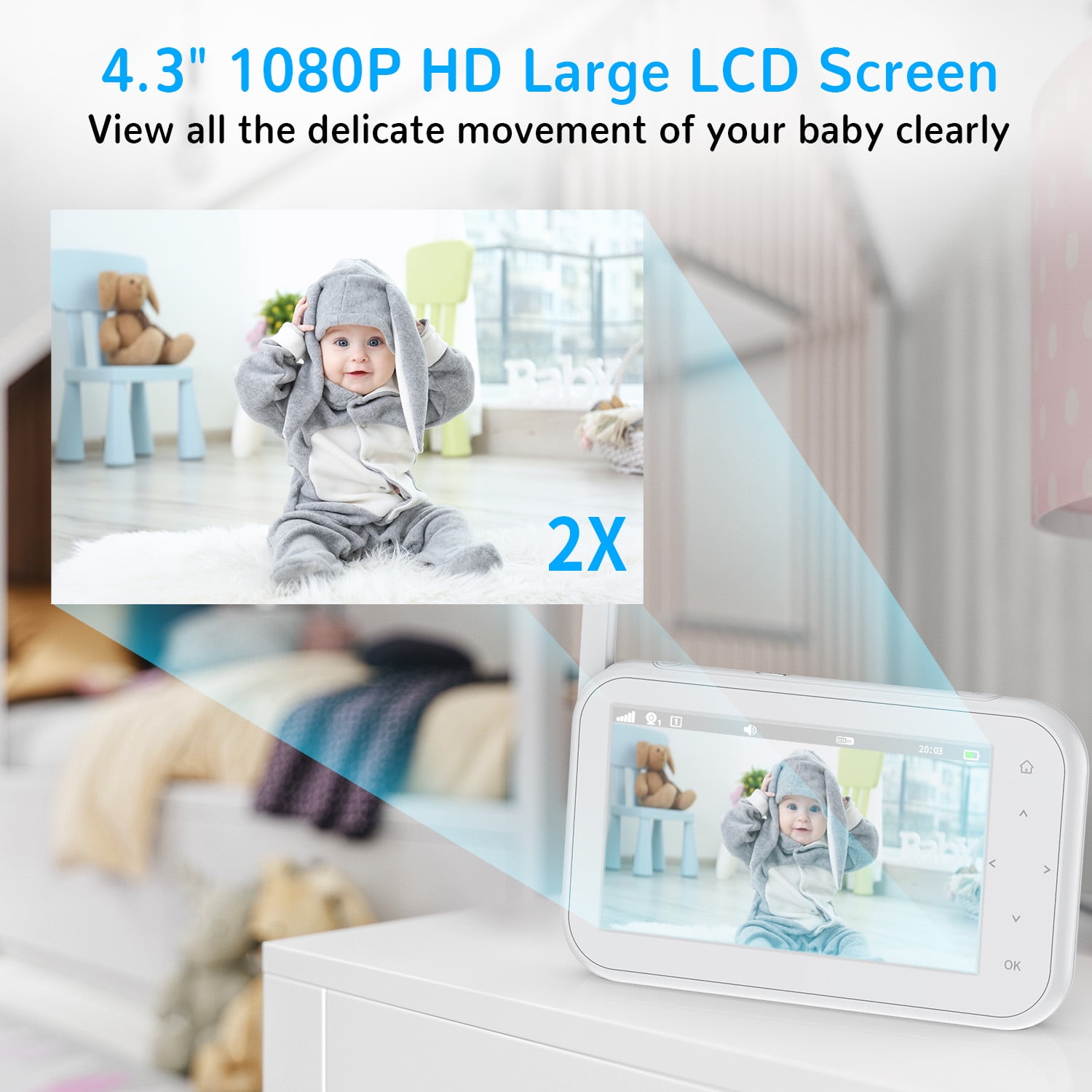 FEBFOXS 4.3″ Baby Monitor with Camera and Audio, Video Baby Monitor, Baby Camera with 1300 ft Range, 2X Zoom, 2-Way Talk Night Vision, No WiFi